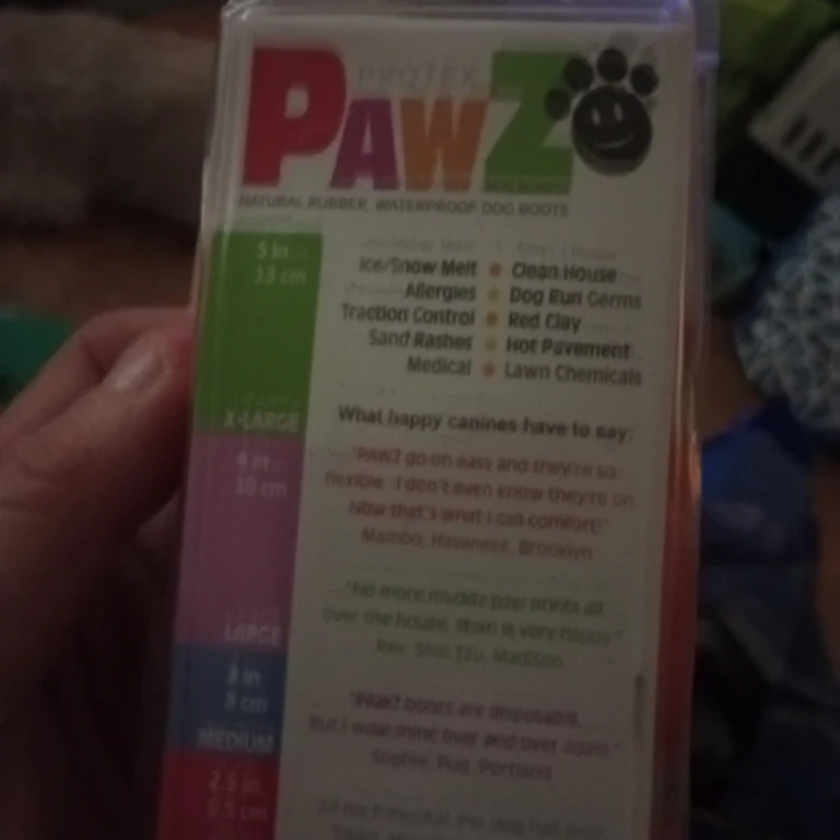 Protex Pawz dog boots are made of natural rubber and are waterproof. These boots protect against ice, snow, salt, and hot pavement. They're also great for keeping paws clean from dirt and lawn chemicals.