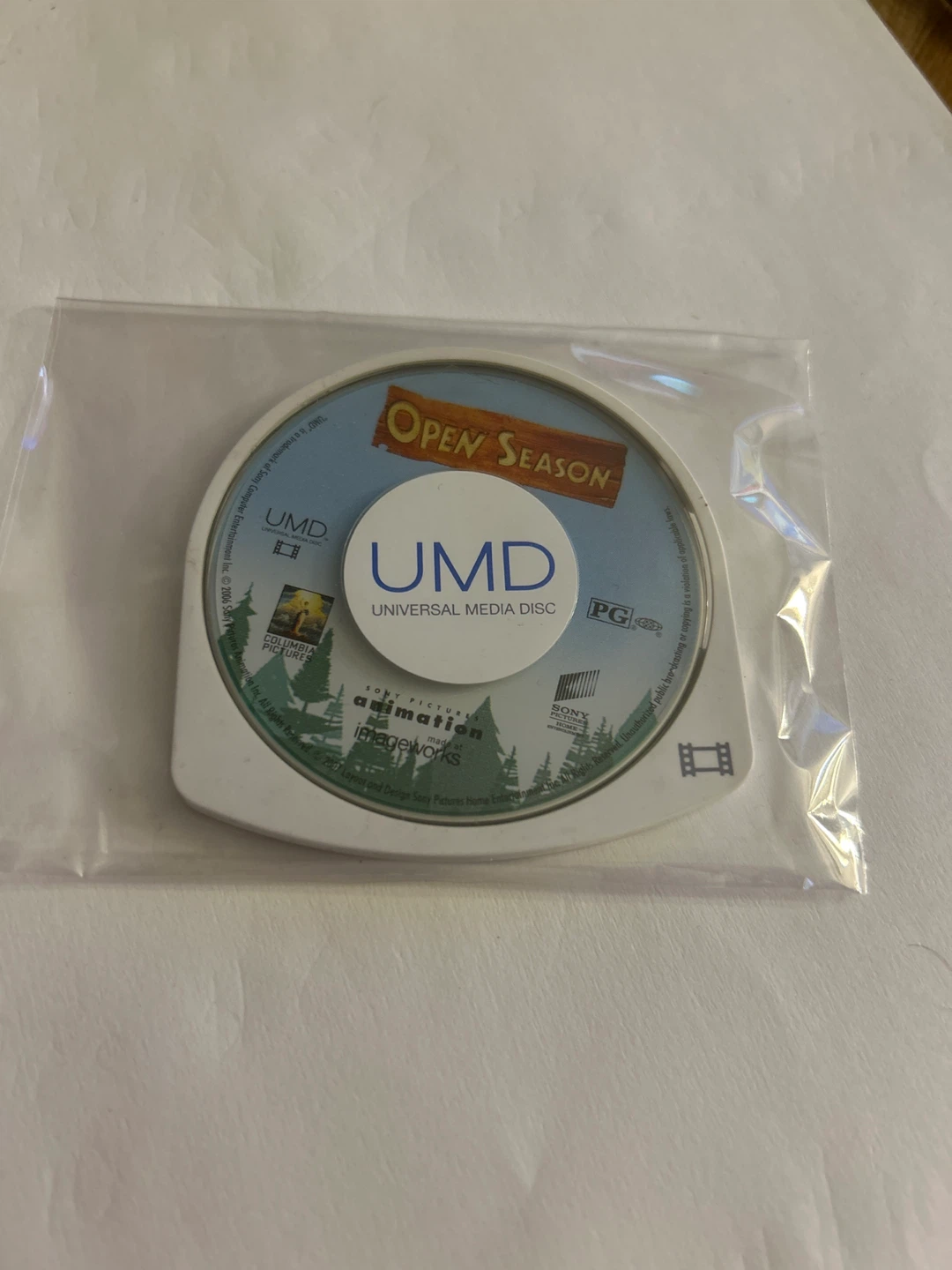 This is the 'Open Season' Universal Media Disc for the PSP. It's a movie disc rated PG. The disc is made by Sony Pictures Animation.
