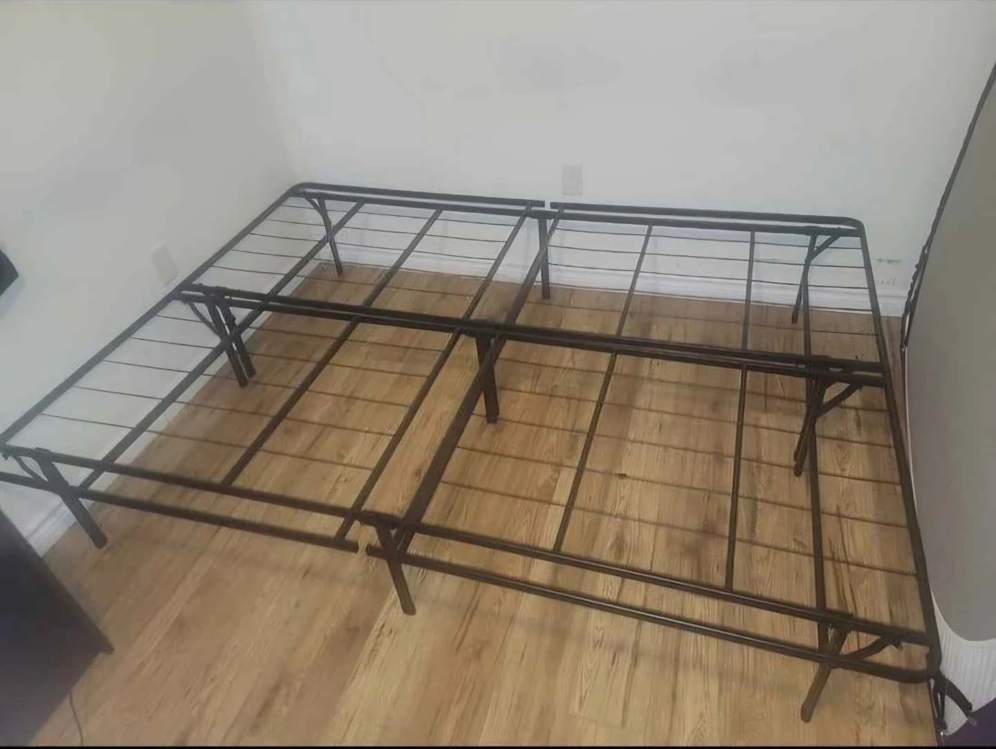 This is a Zinus Twin SmartBase mattress foundation. It's a metal bed frame that provides sturdy support for your mattress. It's easy to set up and folds for storage. This frame is great for anyone needing a reliable and space-saving bed solution.