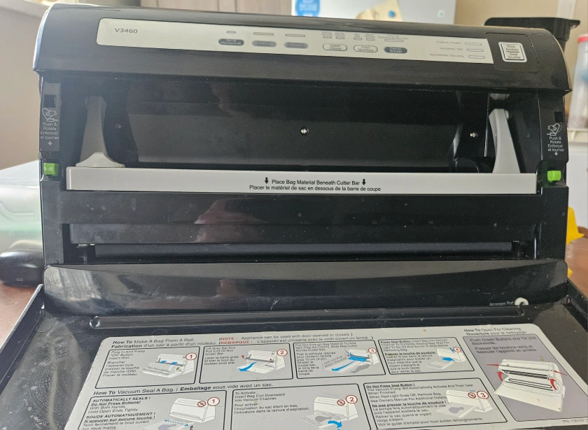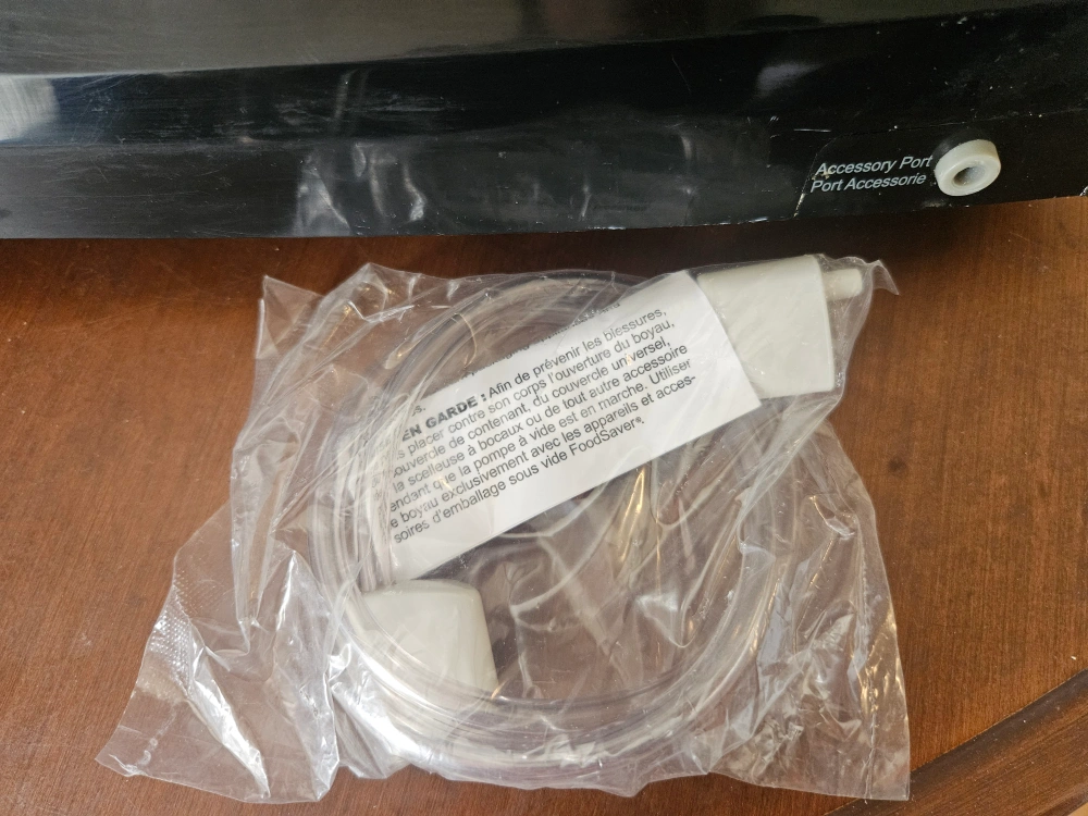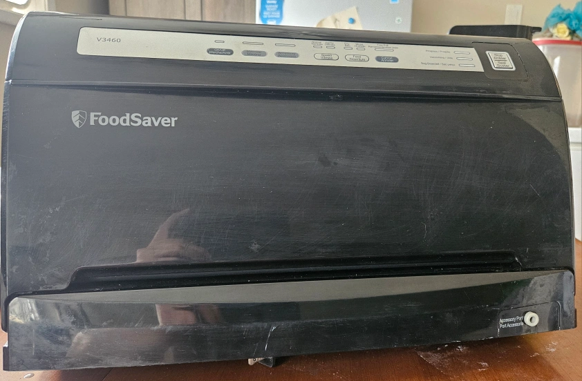 FoodSaver vacuum sealer in black. Comes with an attached cutter . Model number V3460. Container sealing hose never used and is for the sealing containers you can still buy. Works great I just purchased one that better suited my needs.