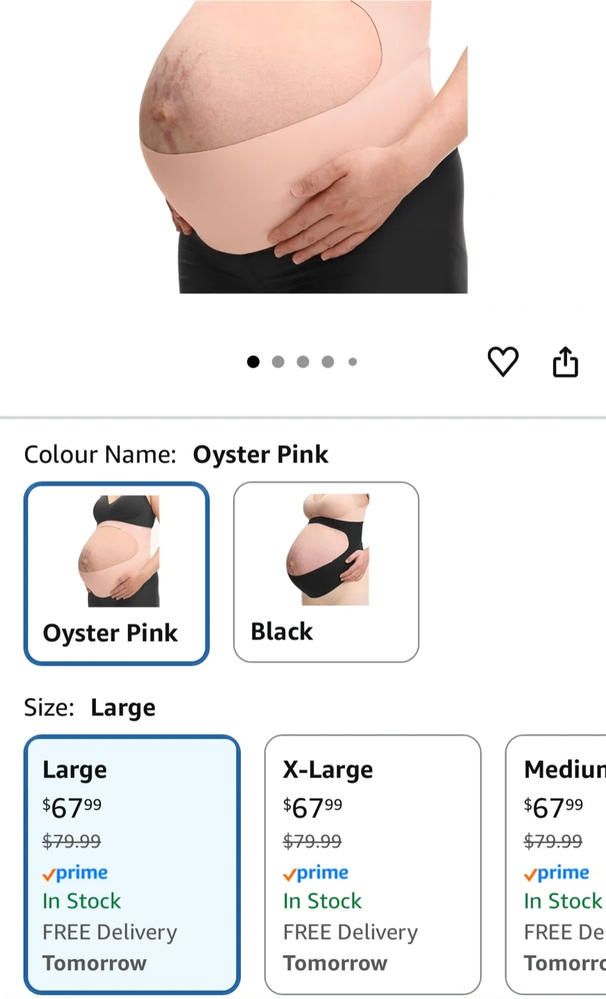 Brand new, never used maternity support band. Purchased multiple sizes and never used this one. Material is soft and breathable. Comfortable and provides great support in both belly and back.