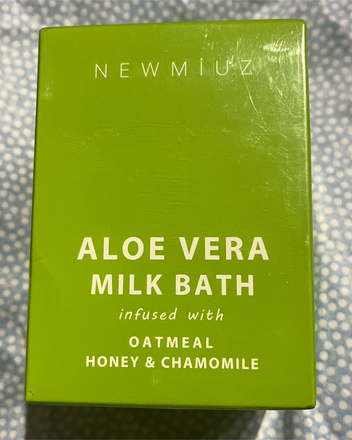 This is a brand new Newmiuz Aloe Vera Milk Bath infused with oatmeal, honey, and chamomile. It's a hydrating milk bath salt that will bring your at-home spa to the next level with natural ingredients and uplifting aromas to enhance your mood and relax your mind and body.