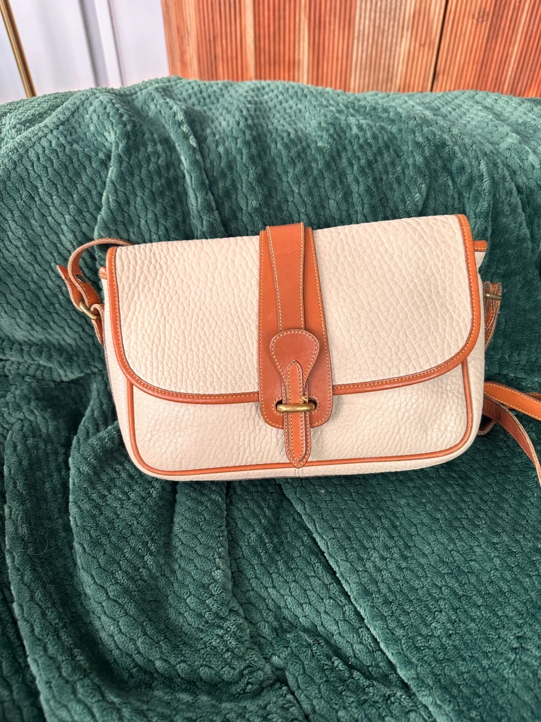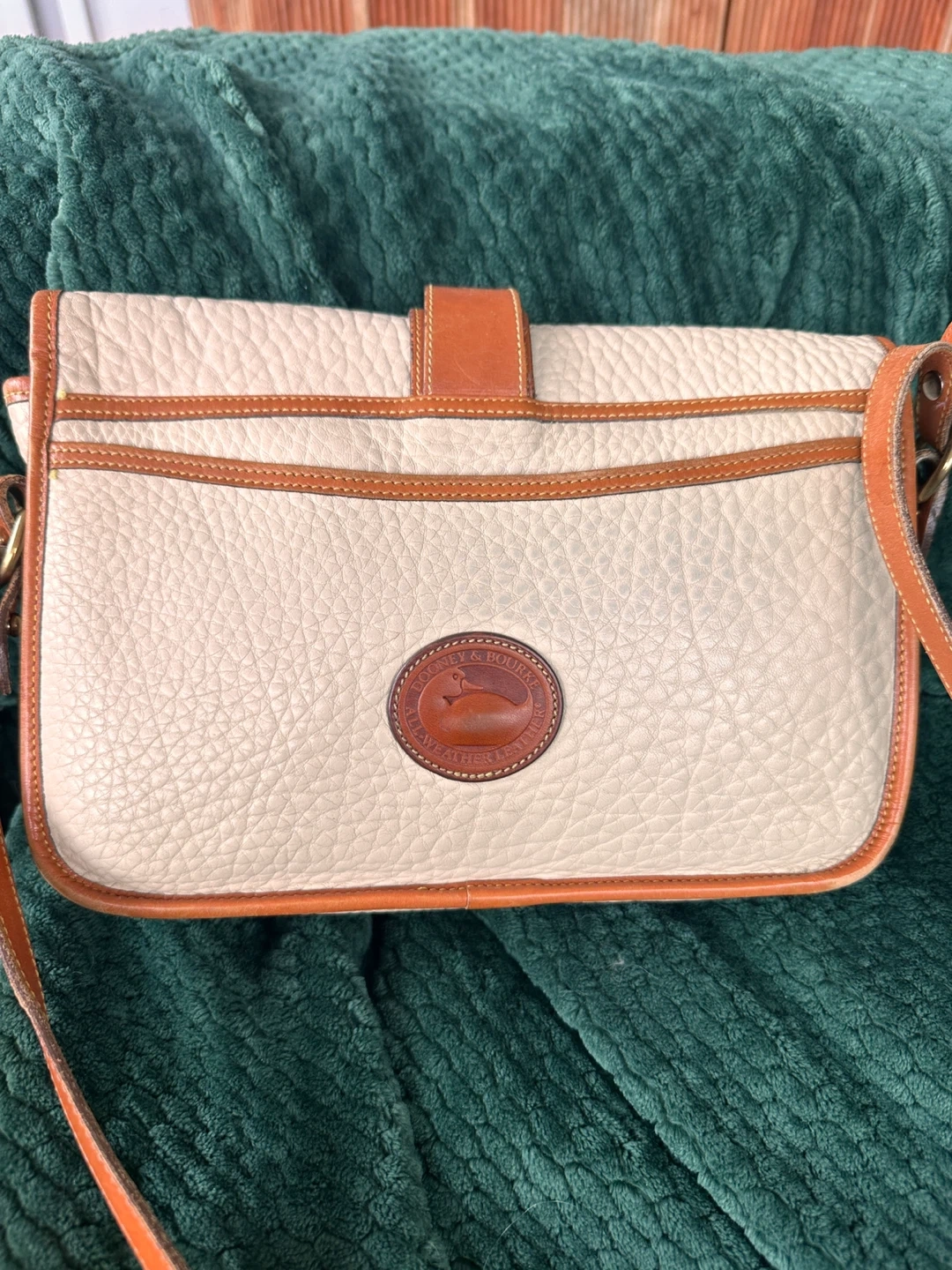 DOONEY & BOURKE All Weather Leather Off White & British Tan Crossbody Saddle Bag In excellent used condition! Hardly any wear shown! Barely Used! See Photos! Approximate Measurements: Height: 7.5" Width:10" Depth: 3.5" The hangtag is the only thing missing to this beautiful bag! Asking $160 OBO. Pickup in Etobicoke.