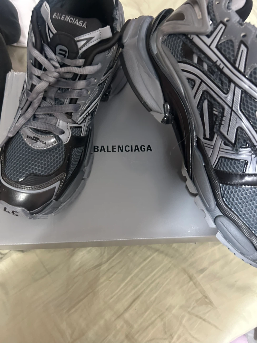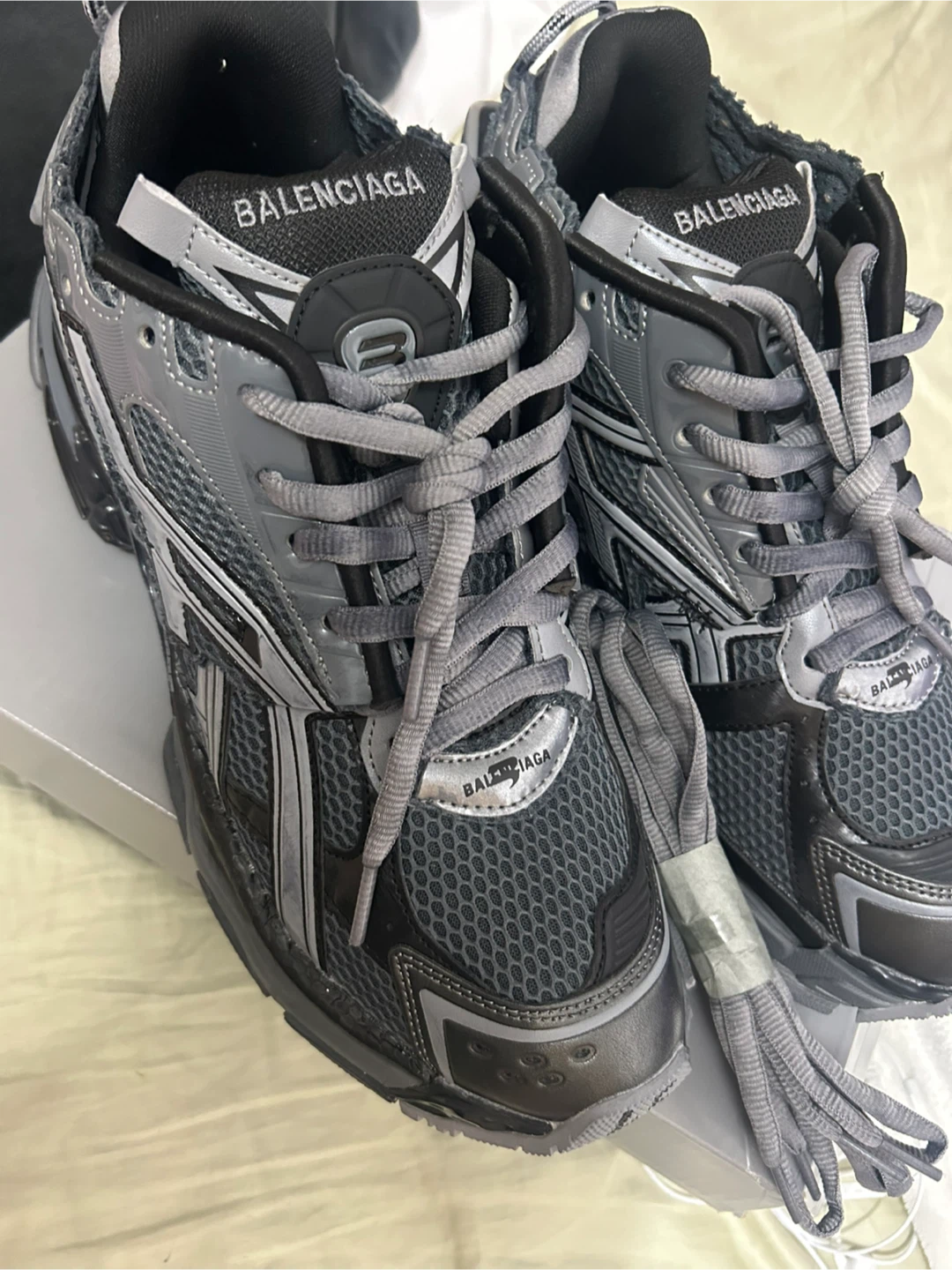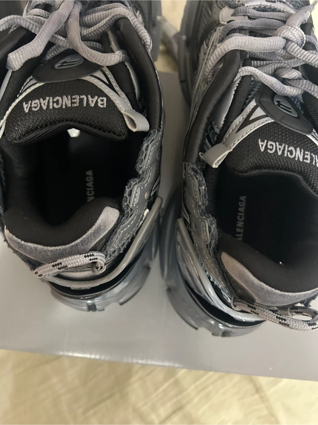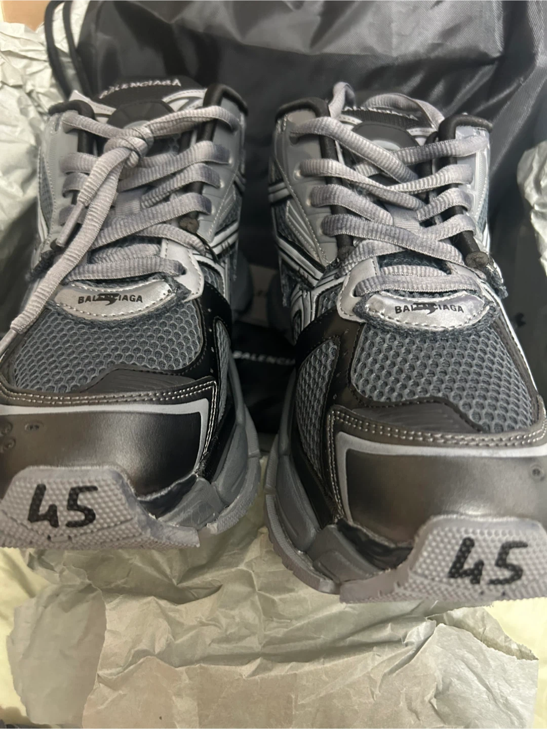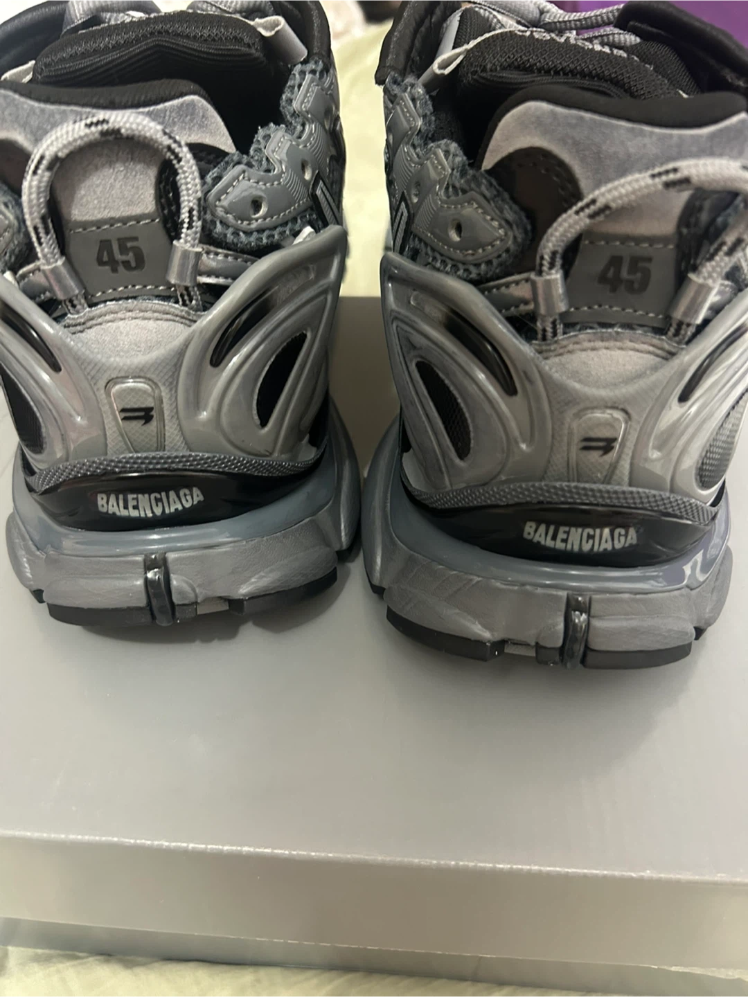 Balenciaga Track sneakers in a grey, black, and silver colourway. Includes a Balenciaga dust bag. Size 45. Men US 12. These sneakers are known for their layered design and comfort.