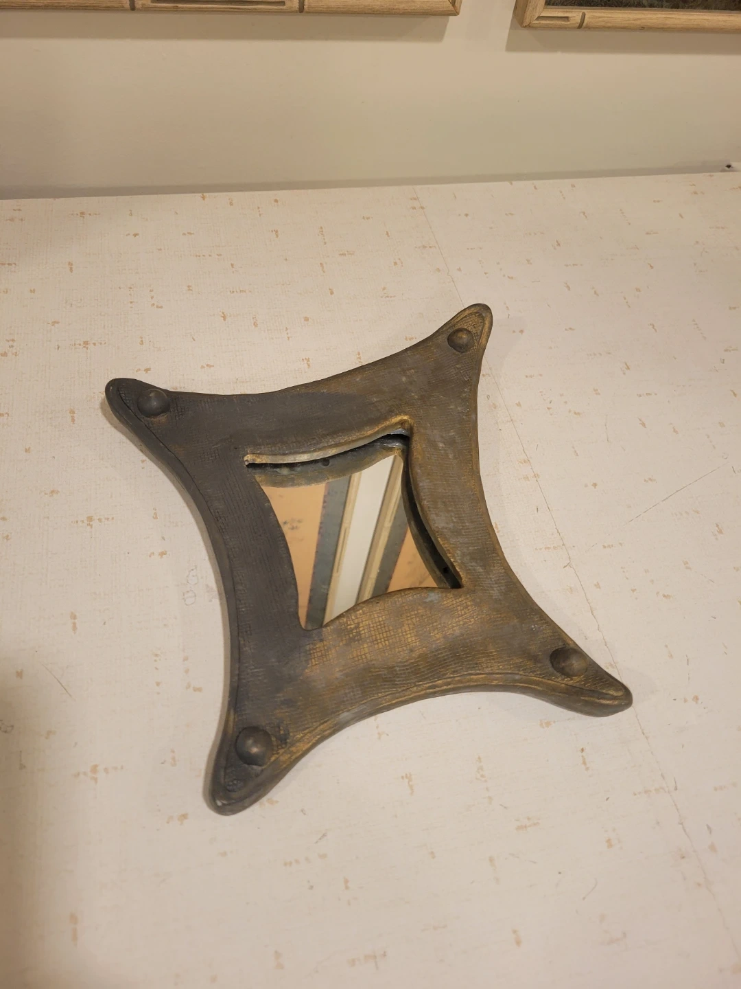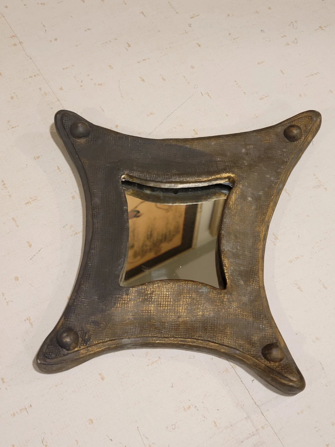 Add a touch of rustic charm to your home with this decorative wall mirror. This unique piece features a square-shaped mirror set in a dark steel grey w/gold accents in s resin frame, perfect for adding character to any room or covered garden space.