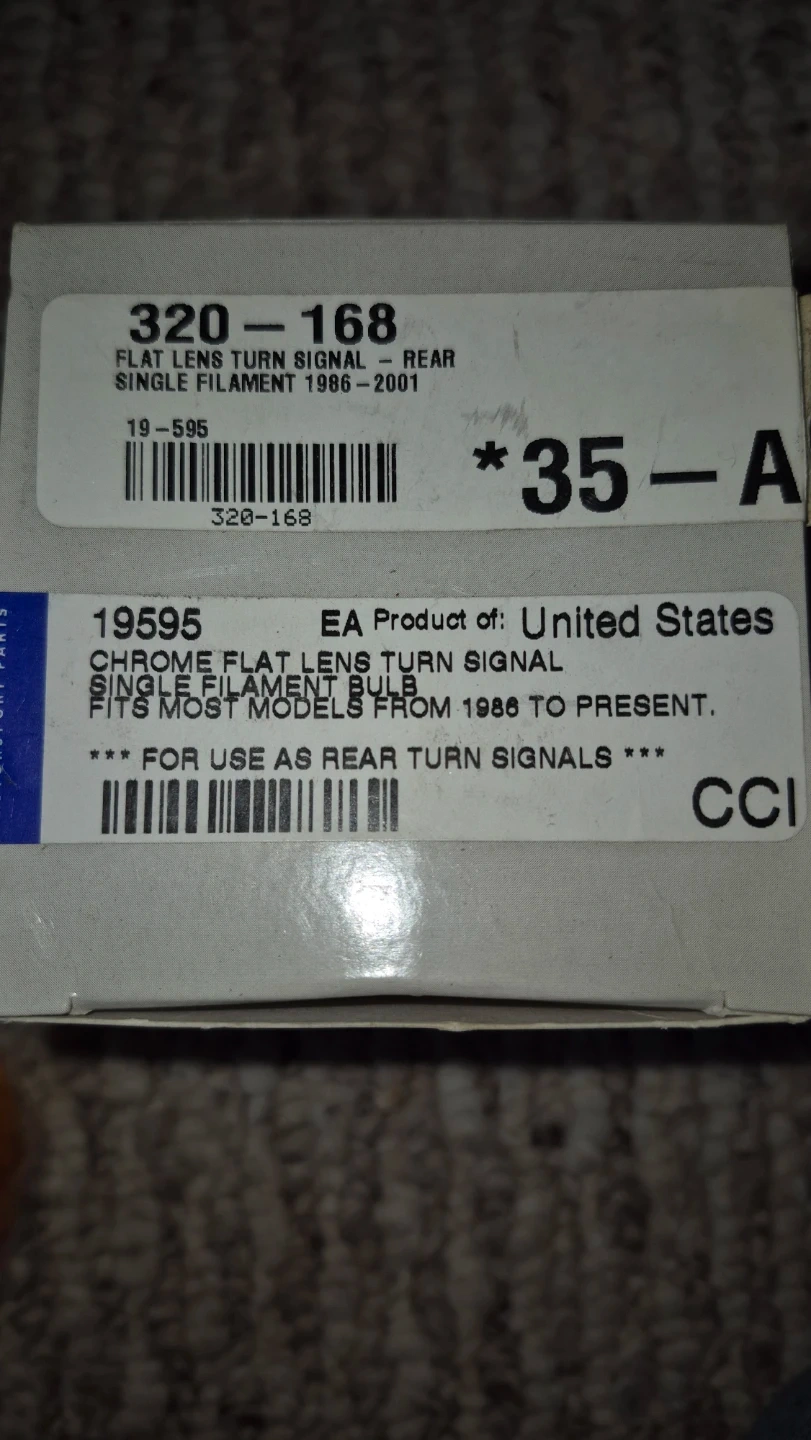 CCI chrome flat lens turn signal assembly. Includes lens, bulb, and rubber gasket. Fits most models from 1986 to present as a rear turn signal. Single filament bulb included.