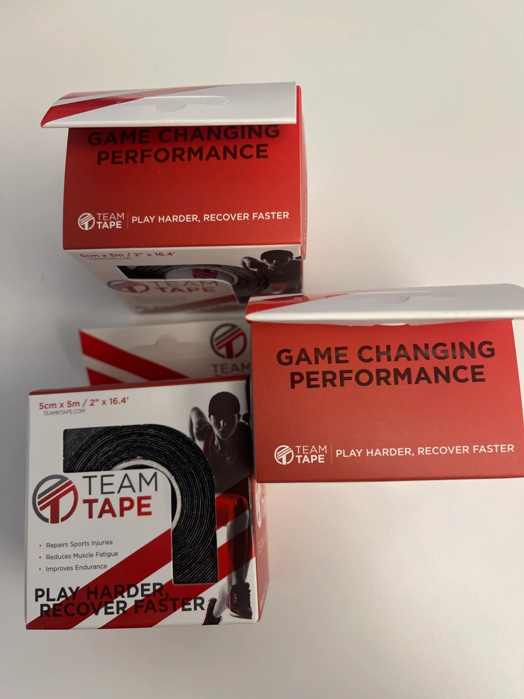 This black Team Tape is 5cm x 5m (2" x 16.4'). It's designed to help repair sports injuries, reduce muscle fatigue, and improve endurance. Get back in the game faster!