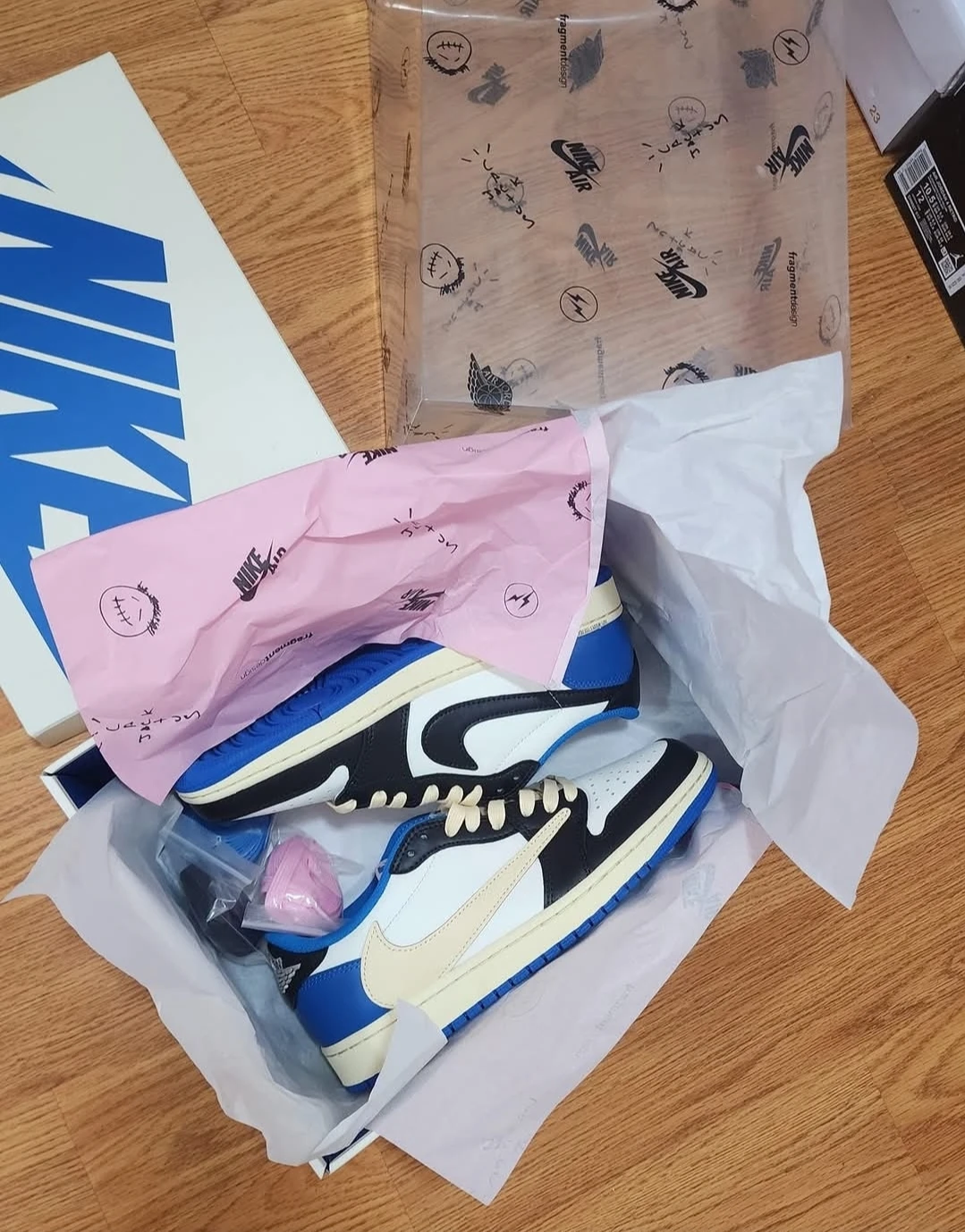 Selling a pair of Nike Air Jordan 1 Low Travis Scott Fragment sneakers. They come with the box and extra laces. Please check the photos for details!