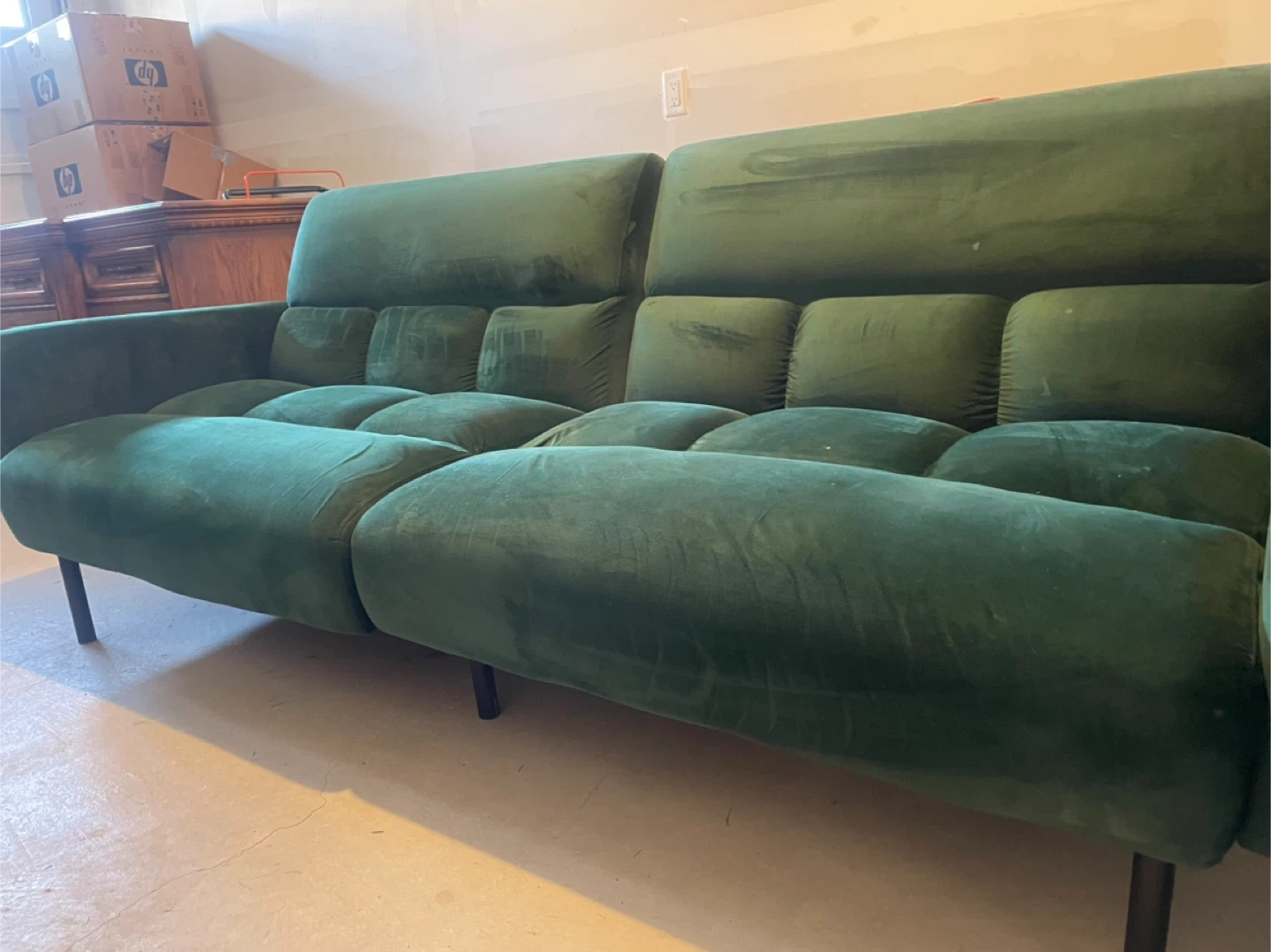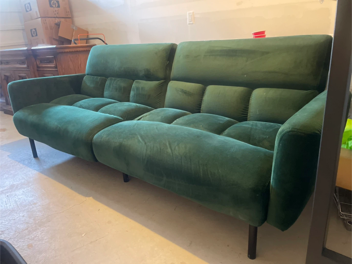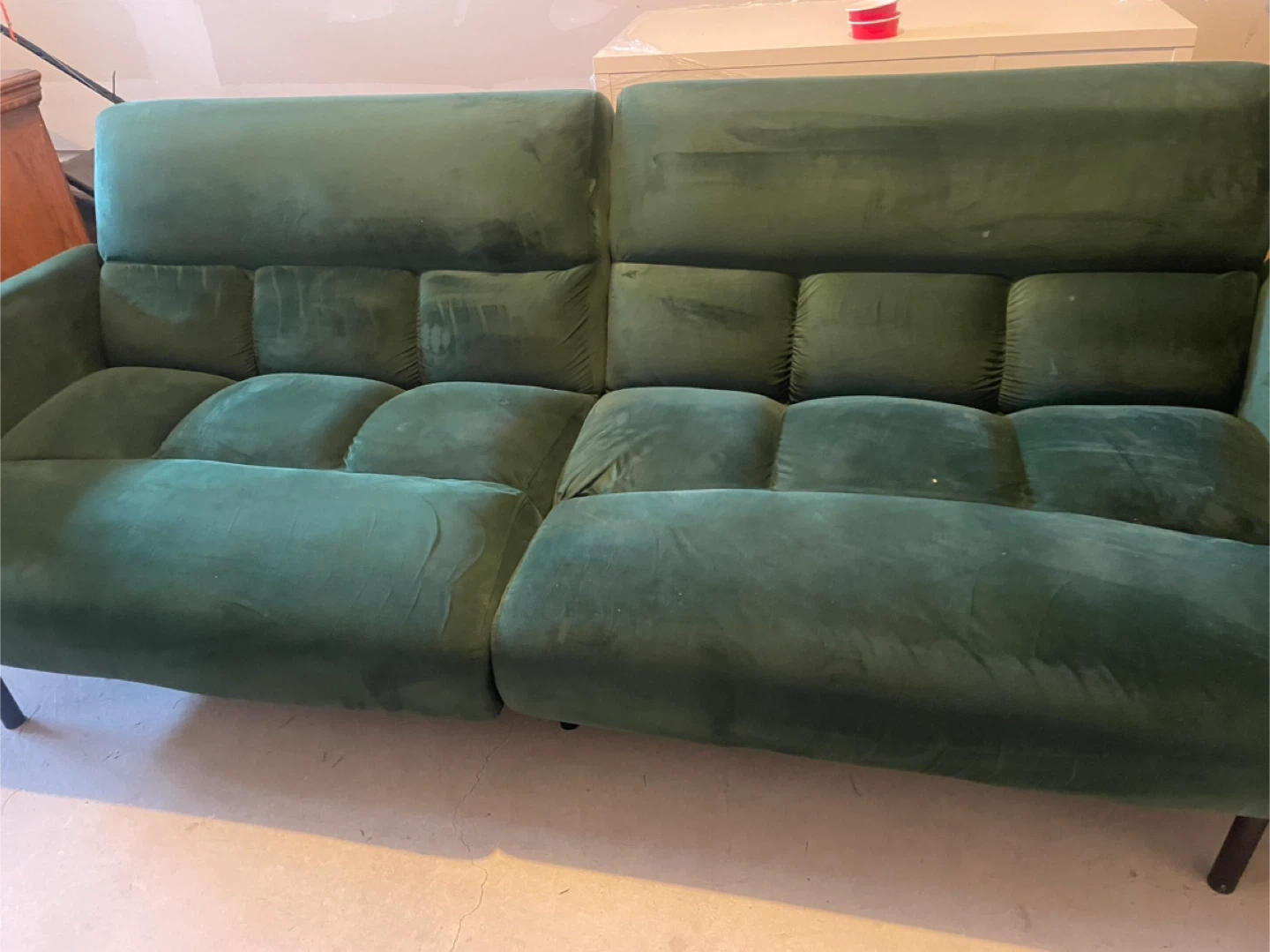 Buy & SellGreen Velvet SofaGreen Velvet Sofa$420A stylish green velvet sofa with tufted cushions. It's a comfortable seating option for any living space. Upholstered in soft velvet fabric.WHERE TO MEET1775 Valley Farm RdView MapSELLERverifiedJoelCity Centre972 reviews1 chats·6 favorites·136 viewsSEND CHAT TO SELLERHi Joel! I’m interested in your listing.Hi Joel! I’m interested in your listing.Get the Karrot app to chatSign In to chat