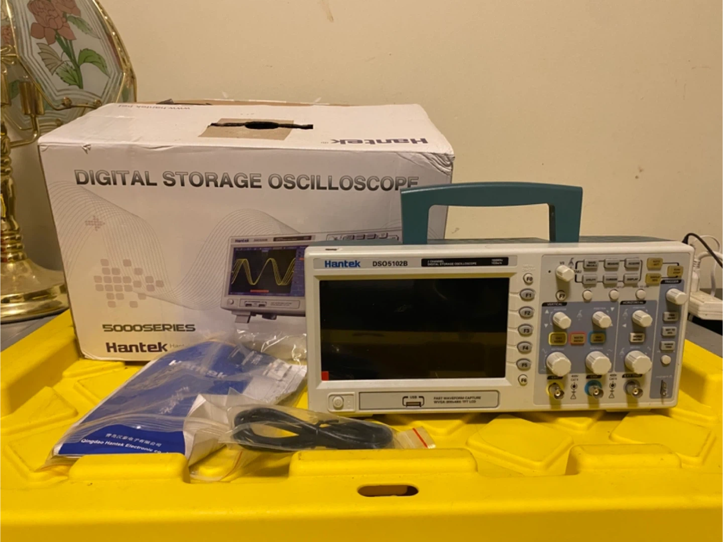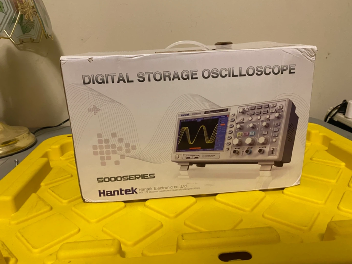 This Hantek digital storage oscilloscope is a 5000series model. It comes with its original box and accessories. This is a great tool for electronics testing and repair.