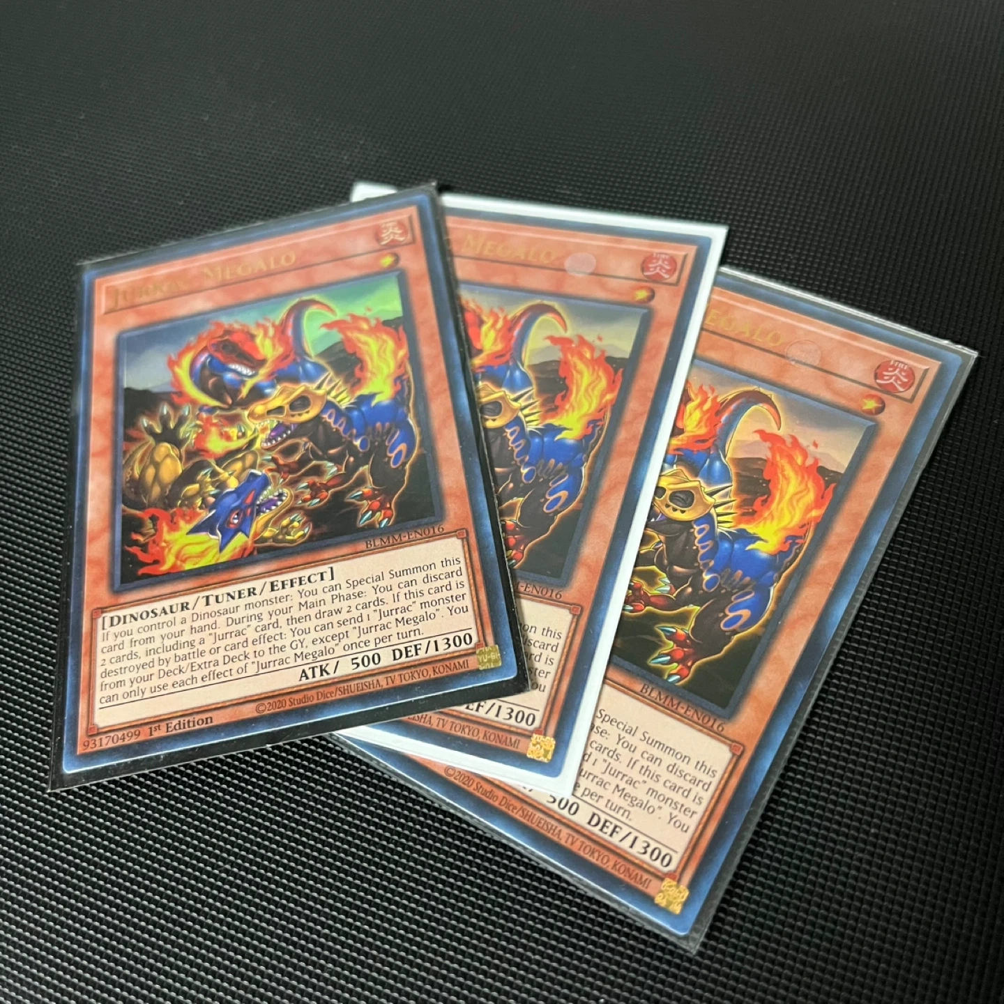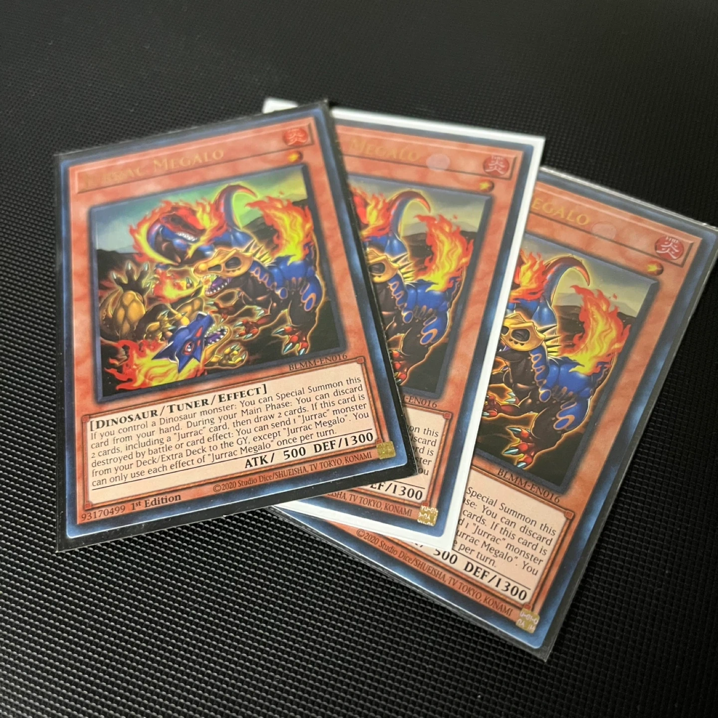 Selling a play set of Jurrac Megalo BLMM Yu-Gi-Oh cards. Pulled fresh out of the packs. All cards are Mint to near Mint condition.