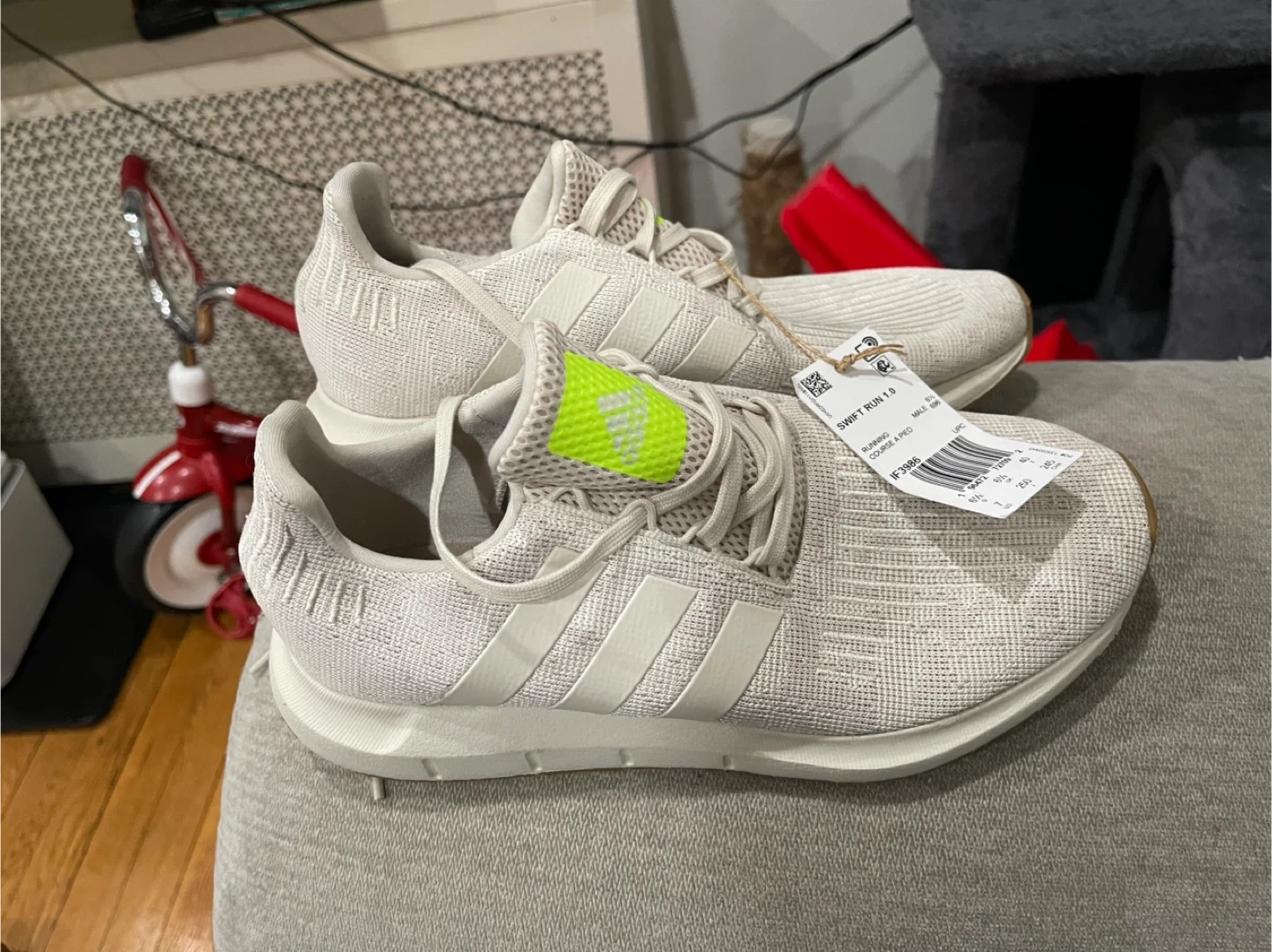 Selling a pair of Adidas Swift Run 1.0 shoes in size 7. They're in great condition and ready for a new owner! The shoes feature a stylish design with the classic Adidas stripes. Perfect for running or everyday wear