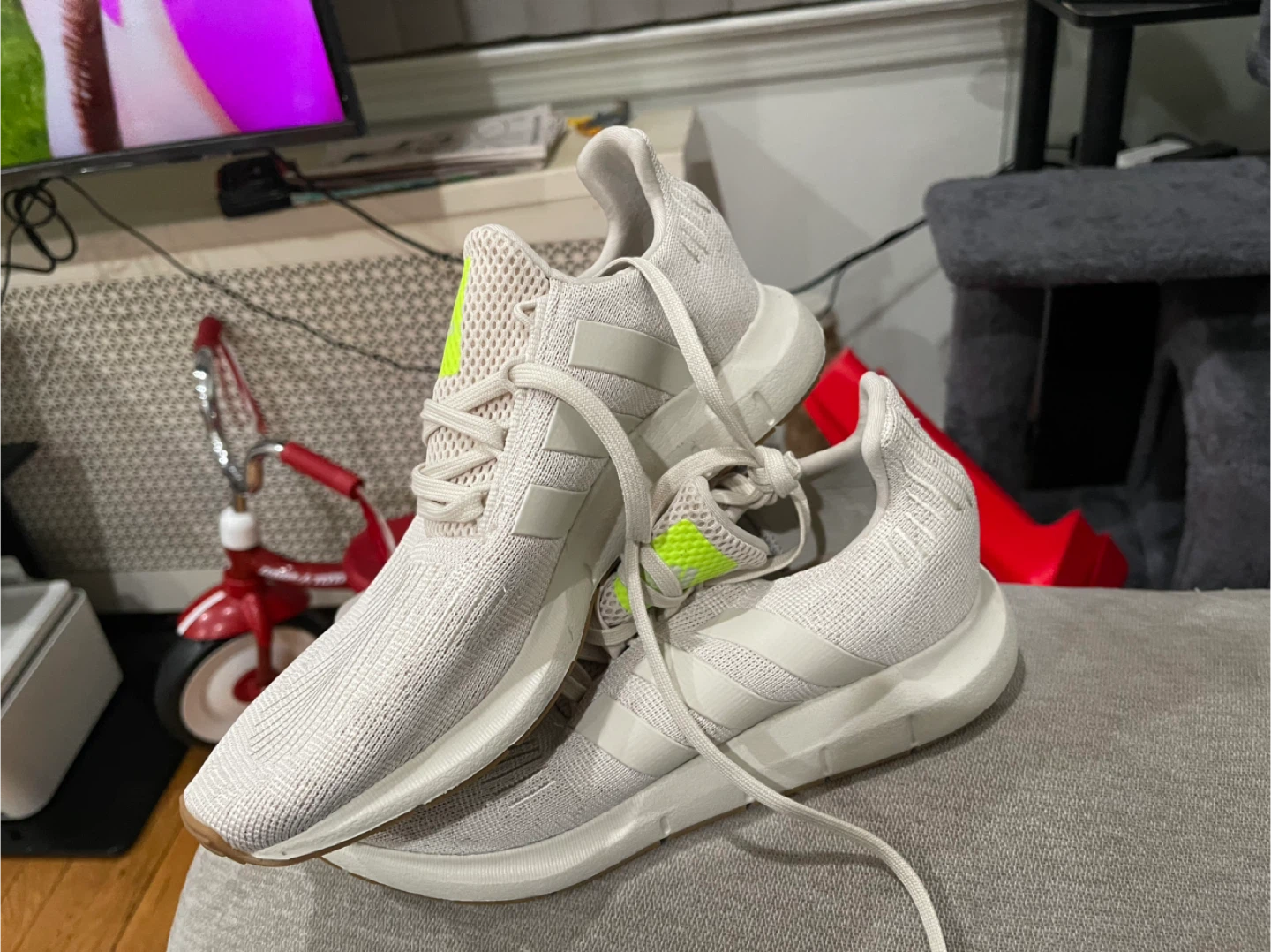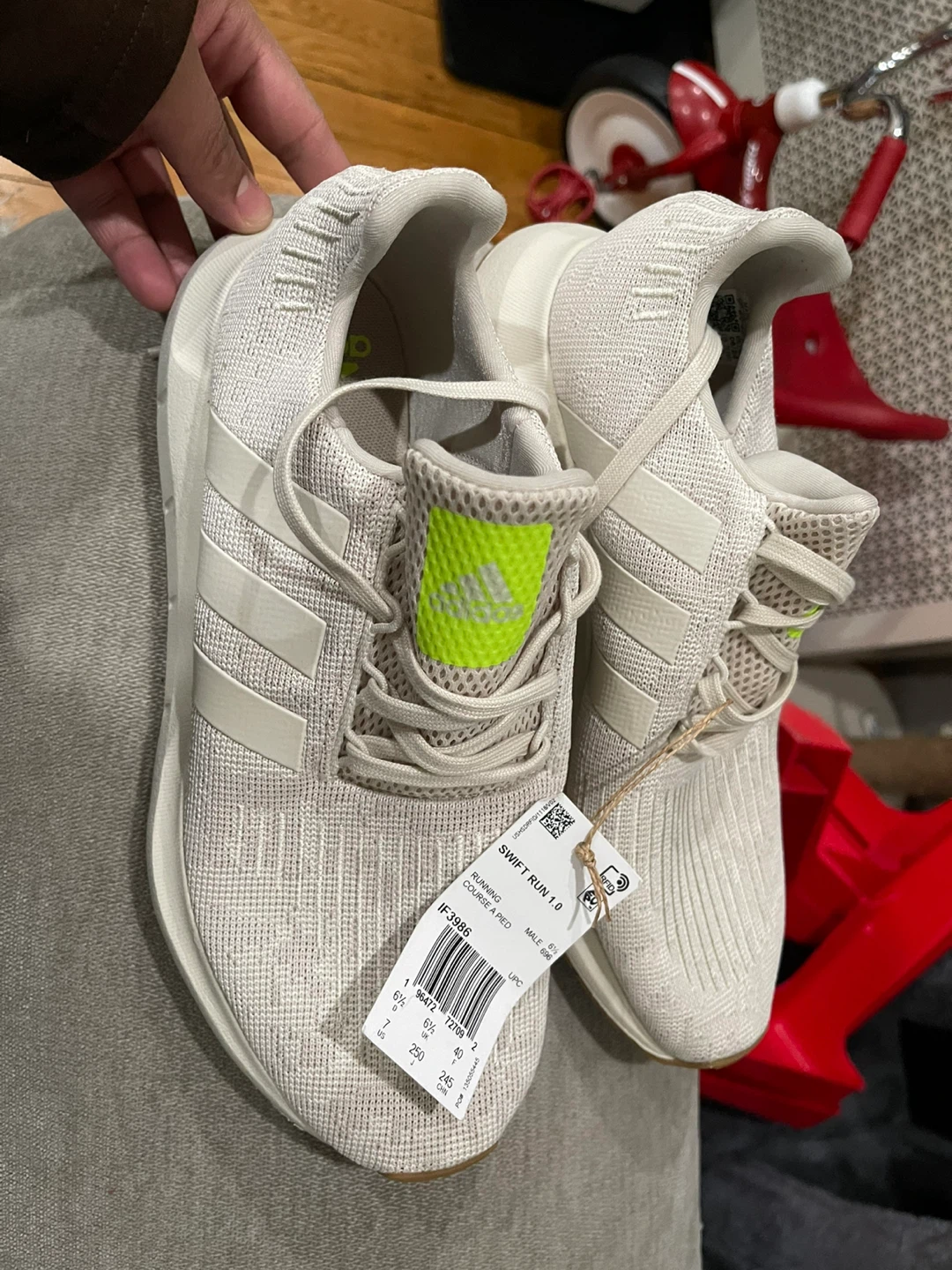 Selling a pair of Adidas Swift Run 1.0 shoes in size 7. They're in great condition and ready for a new owner! The shoes feature a stylish design with the classic Adidas stripes. Perfect for running or everyday wear