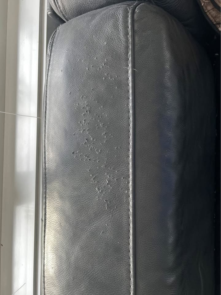 Selling a black leather sectional sofa. It has some wear and tear, as seen in the photos. It’s a combination of metal and wood frame. The leather has been taken care of over the years with proper cleaner and conditioner. It's a great piece for a large living room and still has plenty of life left!