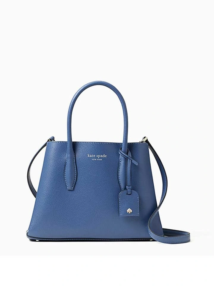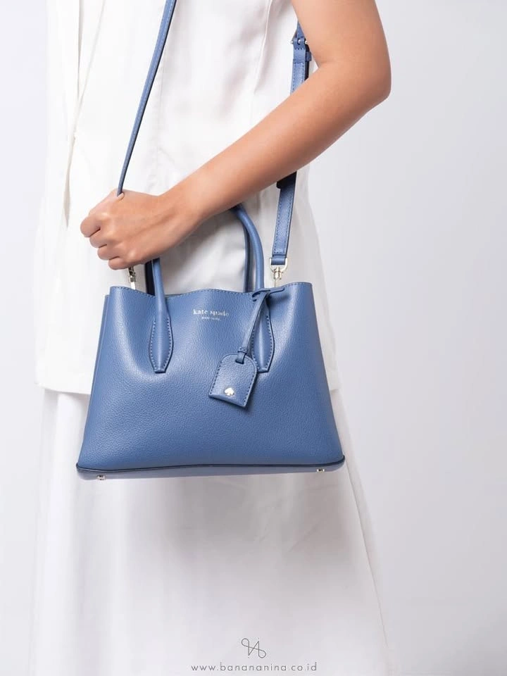 You will love how classic and feminine this satchel is and how much space has been designed into each. SIZE 7.6"h x 9.6"w x 4.5"d drop length: 5" strap length: 22" MATERIAL saffiano double faced leather unlined DETAILS open top satchel center divide pocket foil embossed logo style # wkru5697