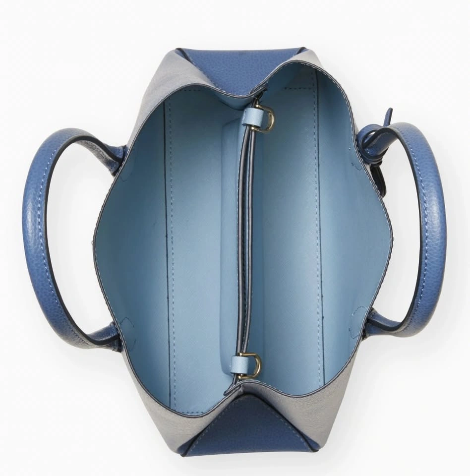 You will love how classic and feminine this satchel is and how much space has been designed into each. SIZE 7.6"h x 9.6"w x 4.5"d drop length: 5" strap length: 22" MATERIAL saffiano double faced leather unlined DETAILS open top satchel center divide pocket foil embossed logo style # wkru5697