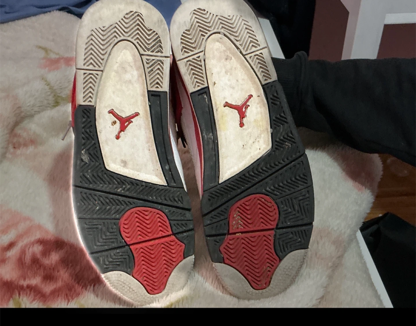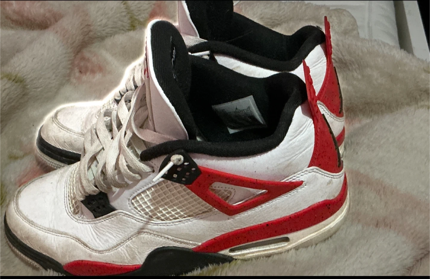 Selling a pair of Air Jordan 4 Retro in the Red Thunder colourway. They are a size 10. These have been worn and show some signs of use, but are still in good condition for everyday wear!