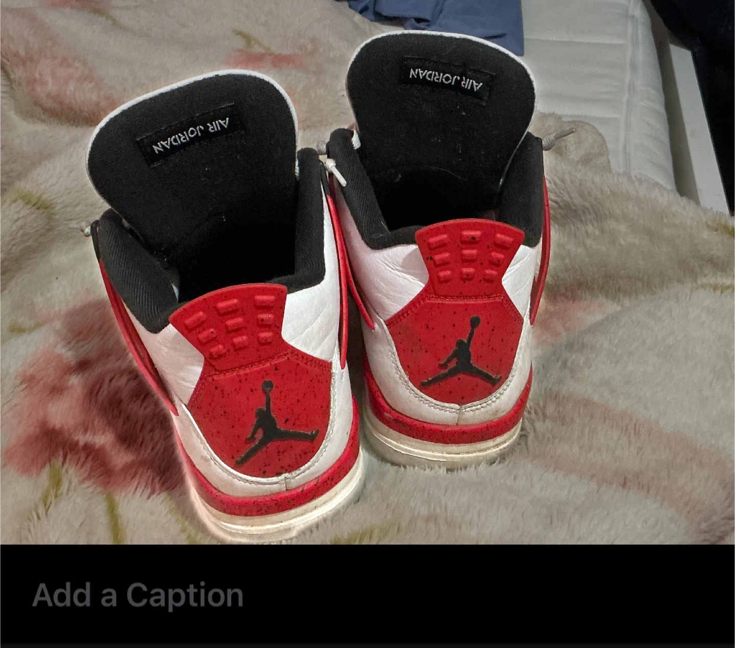 Selling a pair of Air Jordan 4 Retro in the Red Thunder colourway. They are a size 10. These have been worn and show some signs of use, but are still in good condition for everyday wear!