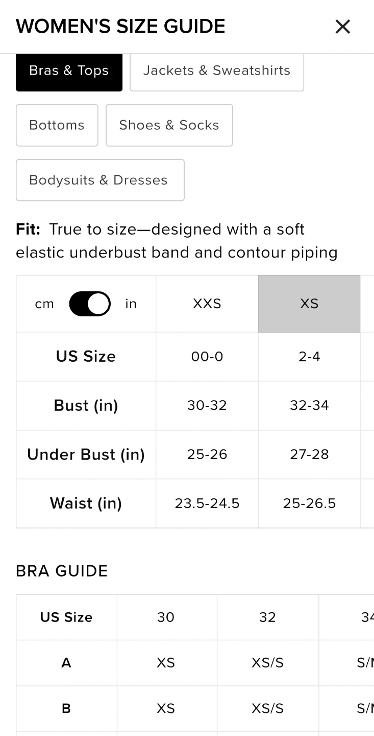 Top fits 32-34", A-B cup