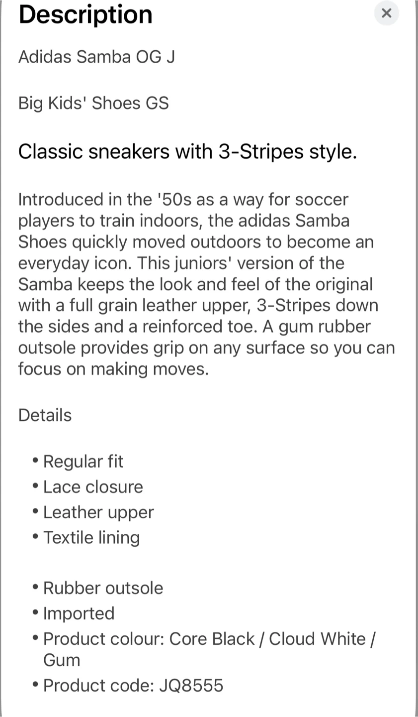 Adidas Samba OG J Black Gum Sneakers