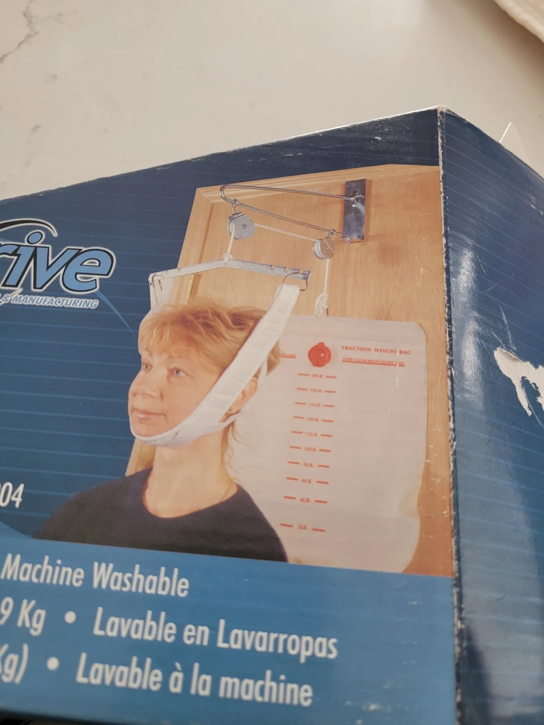 This is a heavy-duty head halter with metal support rings and Velcro closures. It has a 20 lb. capacity and is machine washable. It's designed for overdoor cervical traction.
