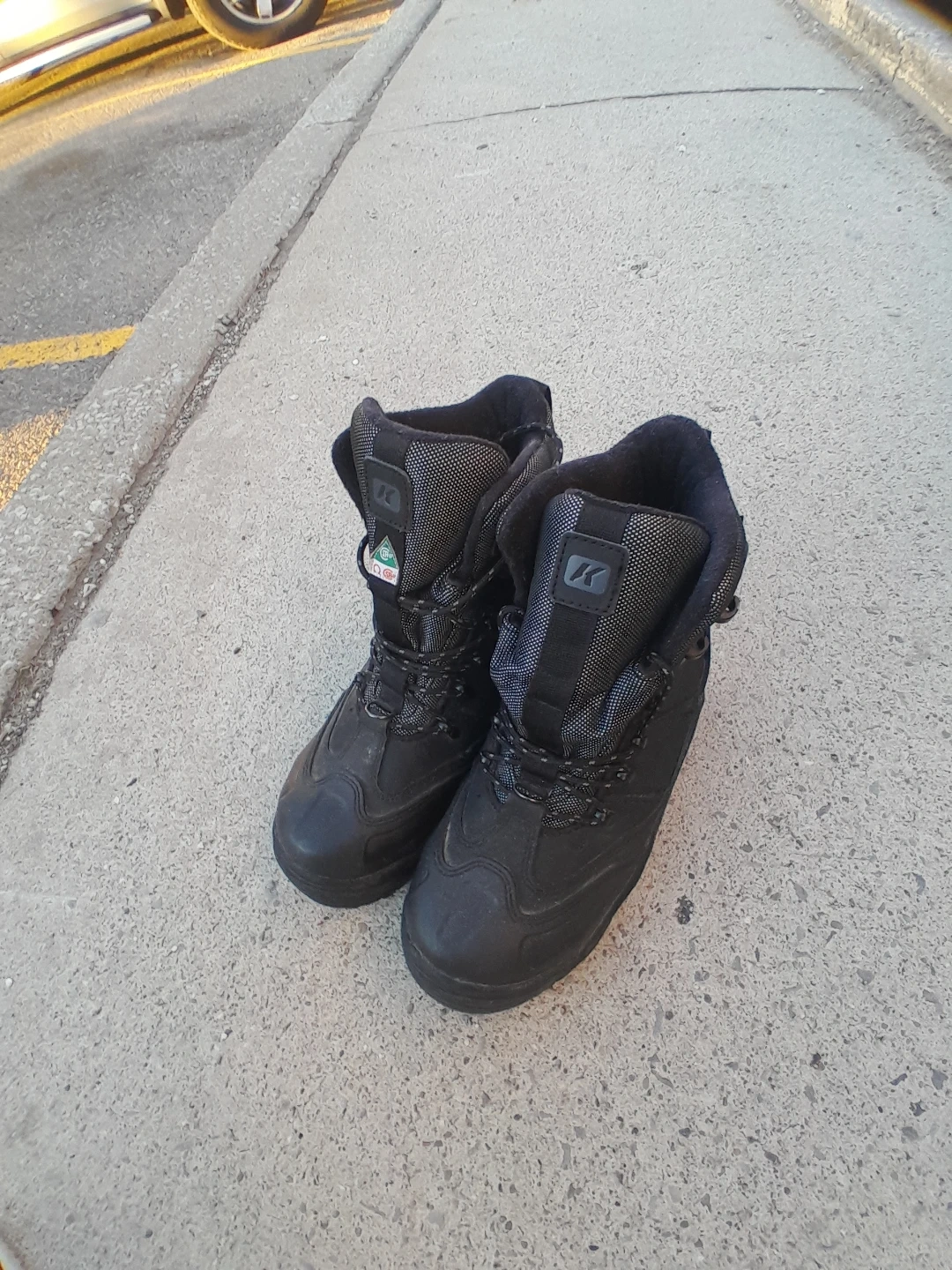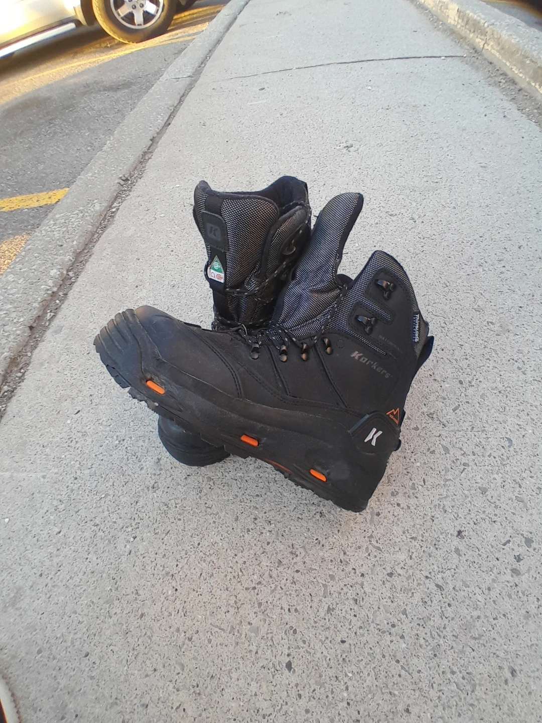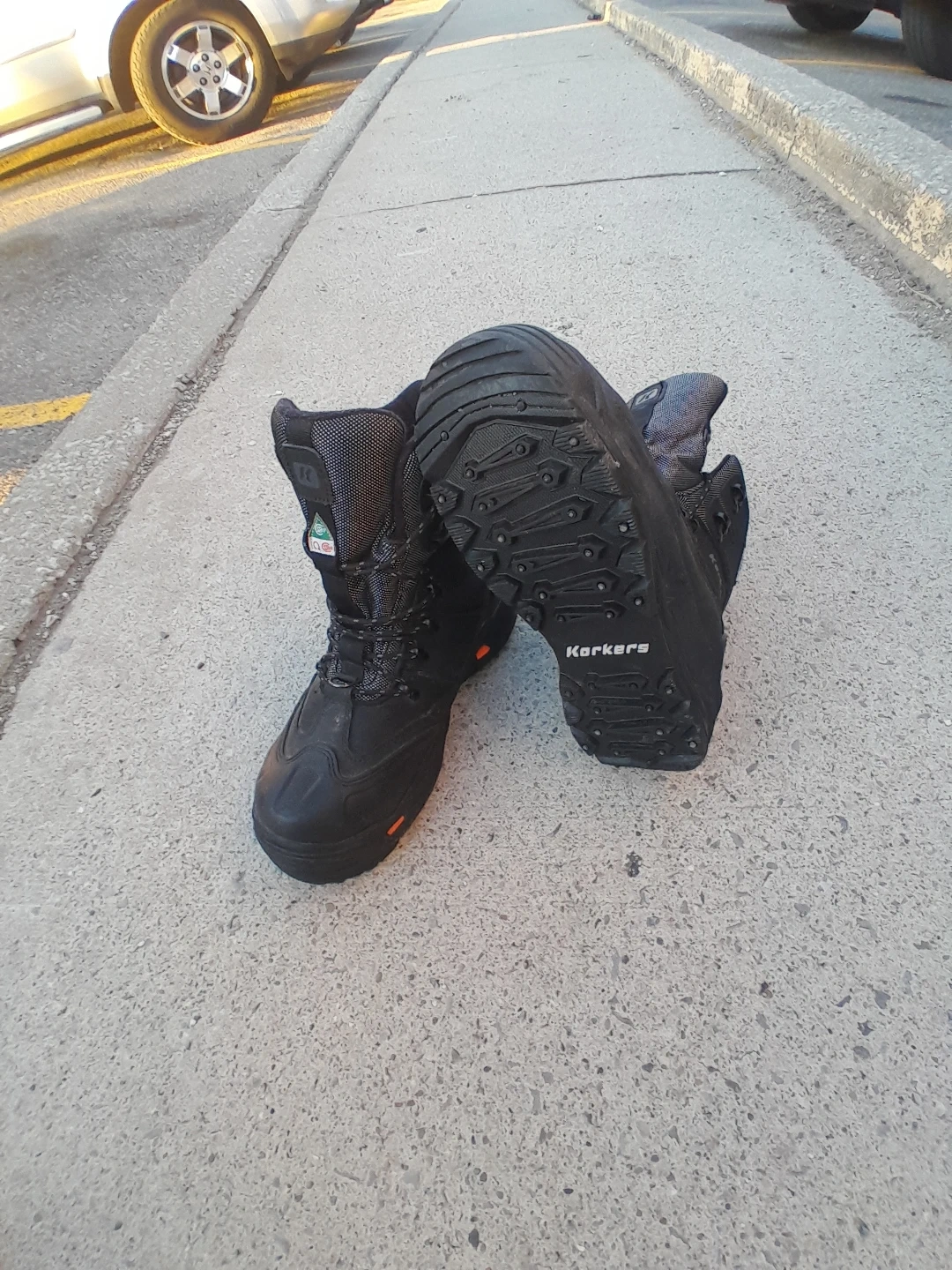 Black Safety boots by Korkers. They're built tough for demanding jobs. Features a durable sole and sturdy construction Men's size 9