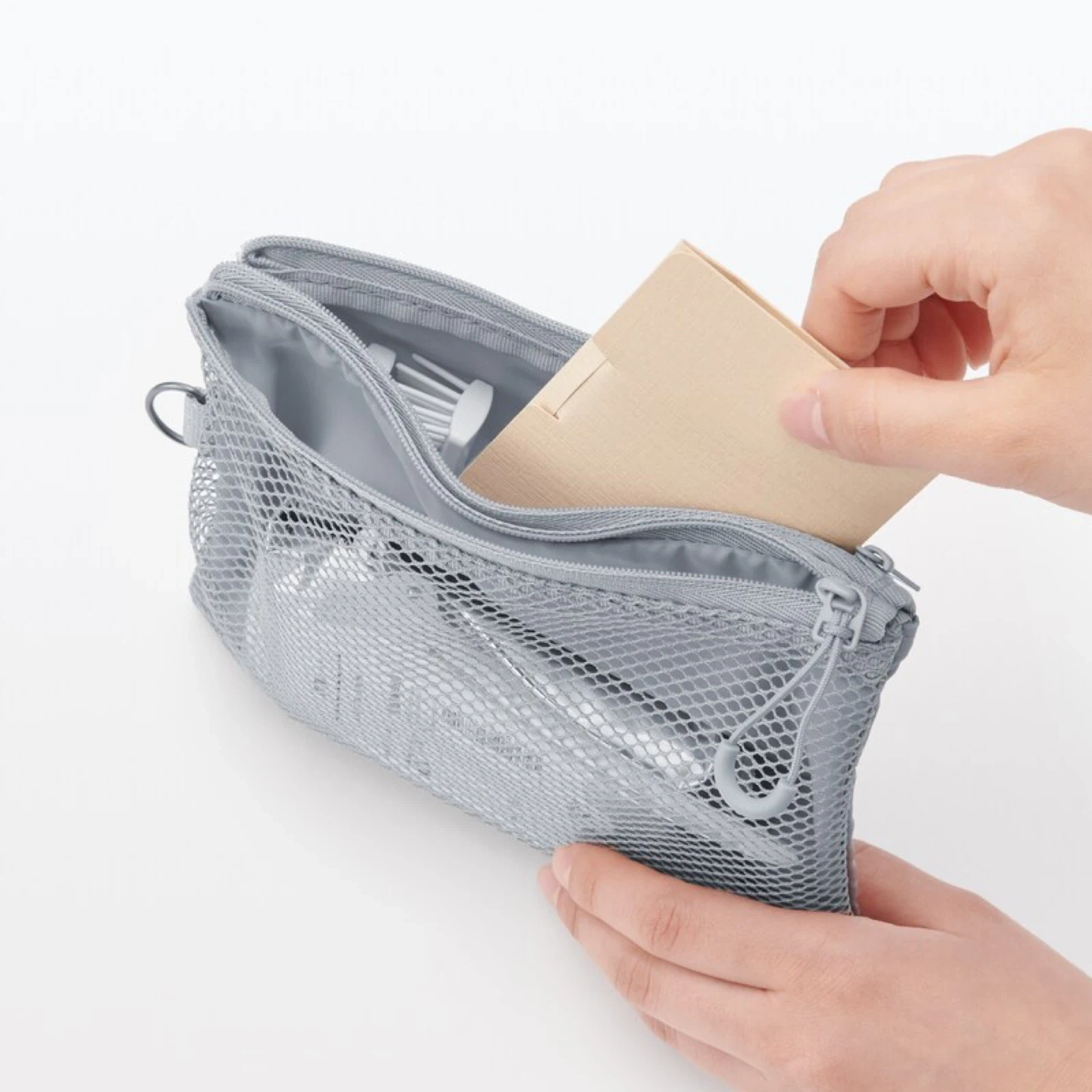 Muji Polyester Two Zipper Case_Medium_Gray_NWT