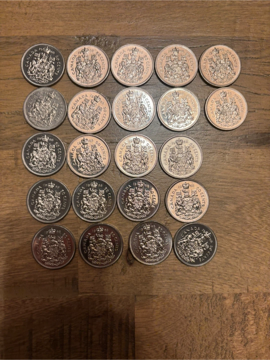 Selling a lot of 22 Canadian 50-cent coins from 1968.