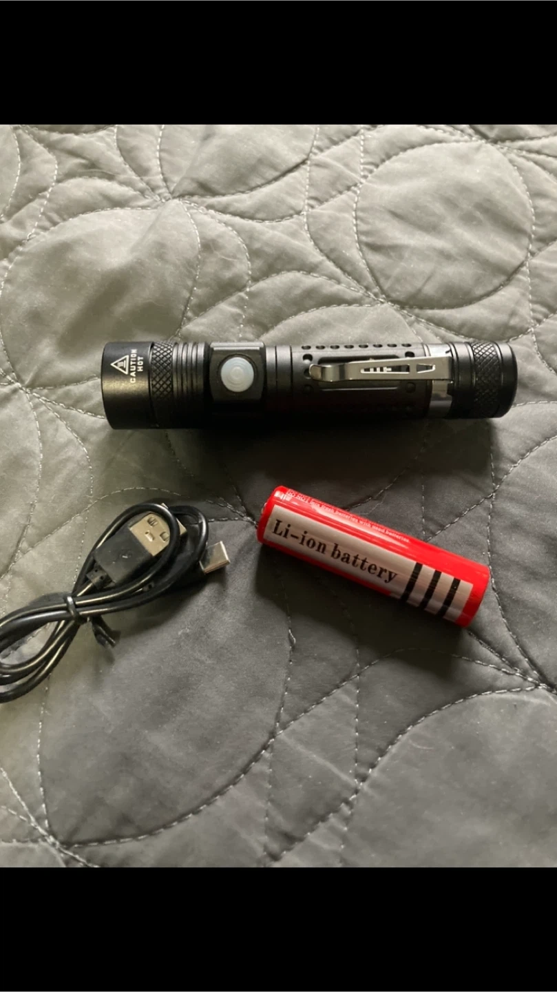 This is a brand new never been used at all 2000 lumen tactical flashlight. It’s the perfect size, not too big or too small. Made of durable carbon steel and is ip68 rated waterproof flashlight. This is a rechargeable flashlight and comes with a lithium ion battery and charging cable. This has 4 light modes; High, low, strobe and S.O.S. Also has zoomable adjustable for wide view down to pin point close in view. This is an absolute beast, super bright high beam and all you’ll ever need. This is one of the best flashlights I have ever used and it’s just as good if not better than the very highly rated Olight flashlight which is a $200 flashlight. I have a few of these and love them. The battery lasts for up to 10hrs. These are $85 with tax in store but I’m only asking $25 firm