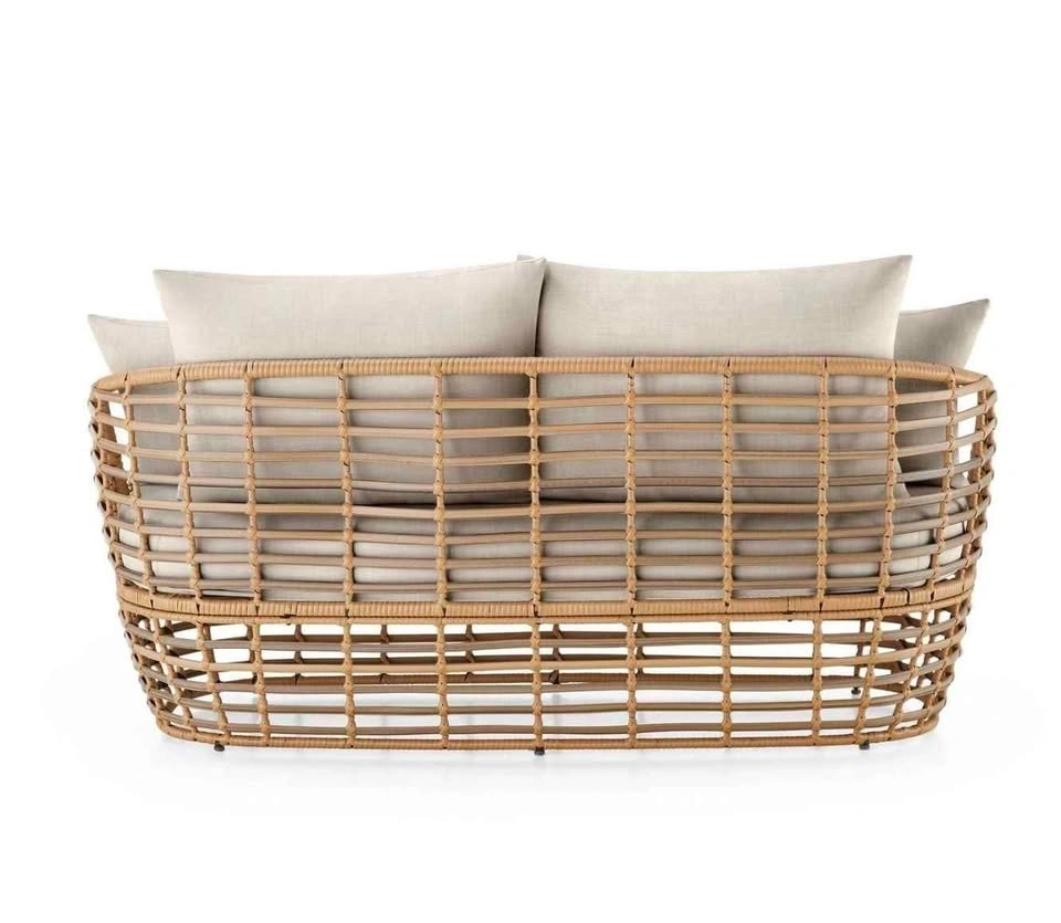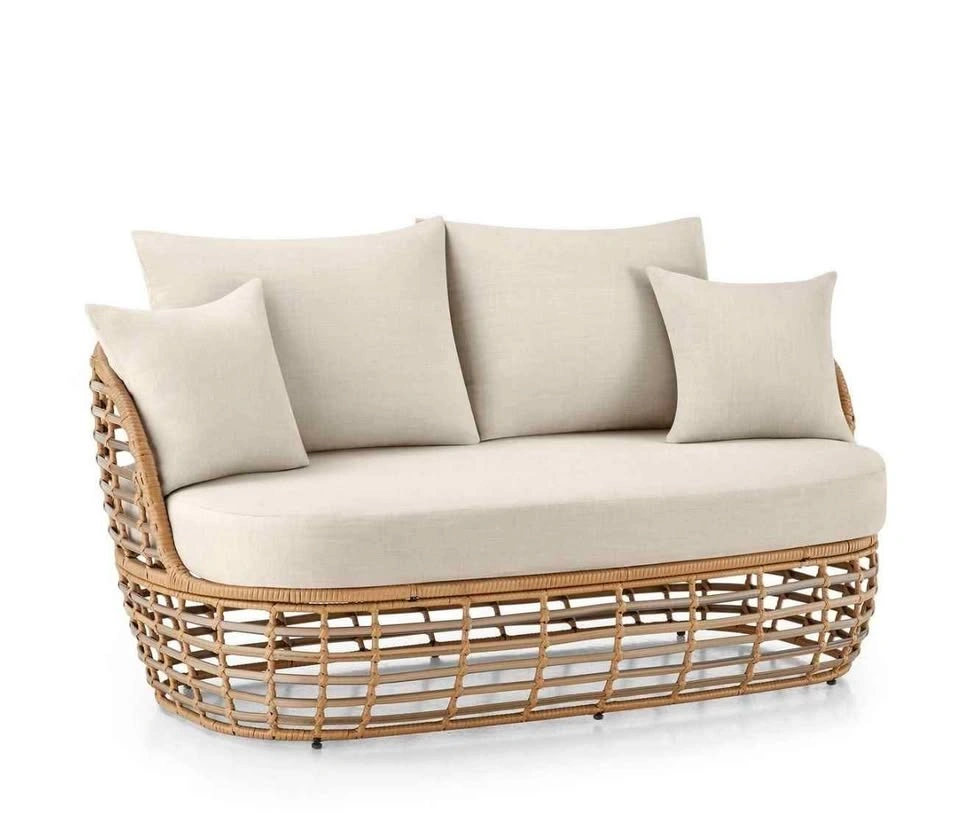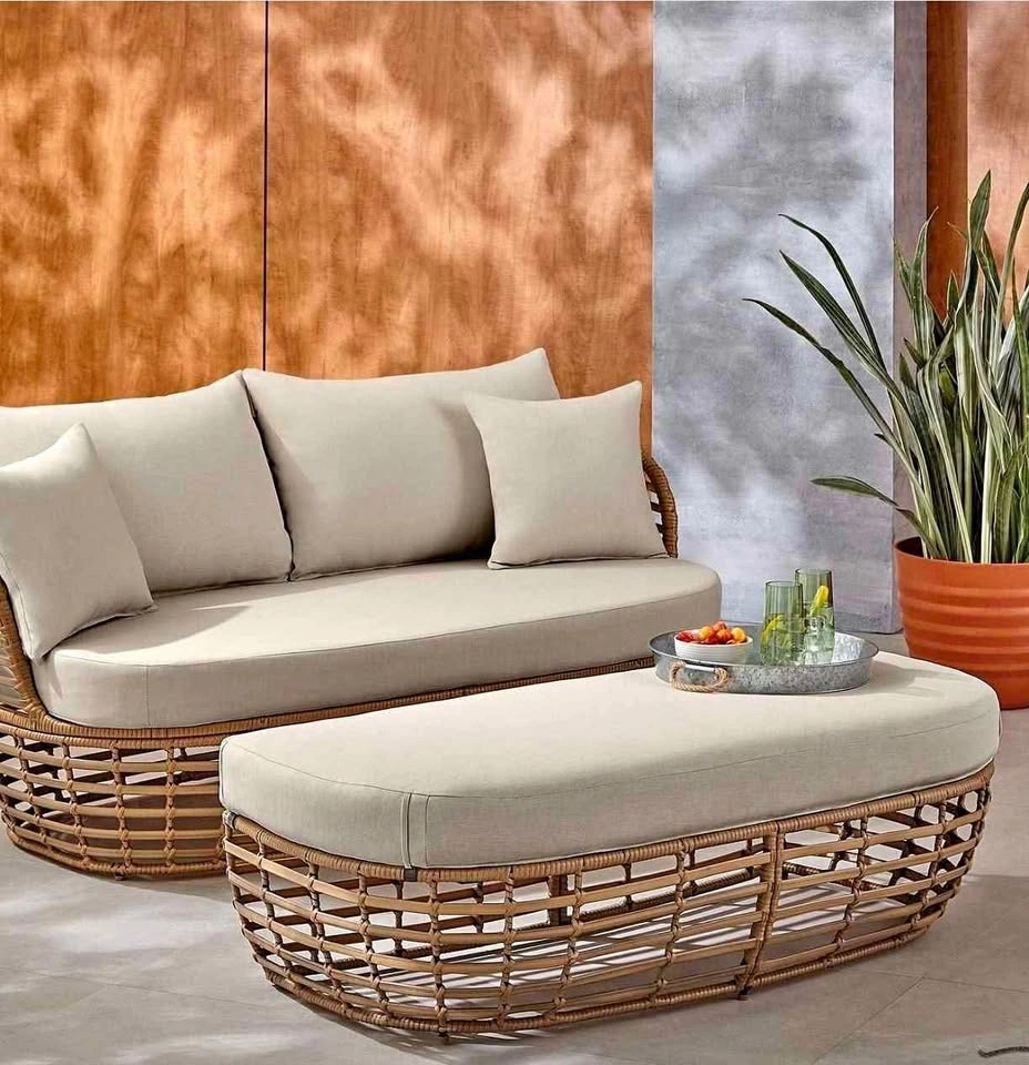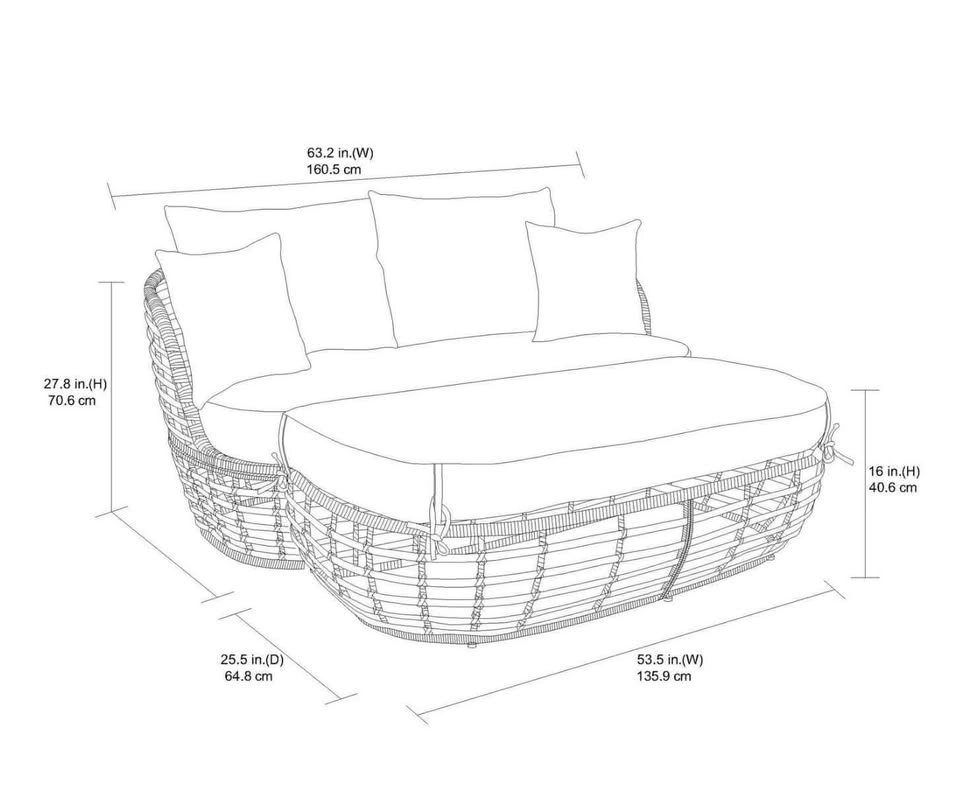 Get comfy in style on the patio this season with the HOMETRENDS Dune 2-Piece Patio Loveseat & Ottoman - Taupe. The all-weather design features handwoven resin wicker wrapped around heavy-duty, rust-resistant steel frames—all crafted to stand up to plenty of sunny days spent outside. It also includes UV-resistant cushions to relax and get extra cozy. The ottoman joins seamlessly with the loveseat, so you can stretch out and use it as a daybed. Even better, its neutral tones will blend beautifully with your existing décor as you create your own outdoor living space. UV Resistant Handwoven, all-weather resin wicker Heavy-duty, rust-resistant, e-coated & powder-coated steel frames UV-resistant solution dyed polyester cushions Ottoman joins seamlessly with loveseat for daybed use 1-year limited warranty 50% recycled polyester. Assembly required. Instructions, hardware kit and tools included Complete 8 piece set includes: 1 Loveseat, 1 Ottoman & 6 Cushions. Loveseat measures 63.2 in. W x 33.7 in. D x 27.8 in. H. Ottoman measures 53.5 in. W x 25.5 in. D x 16 in. H. Overall product weight: 112.9 lbs. Coordinates with other pieces in the Dune patio collection (sold separately)Care instructions: Wipe clean with a damp cloth. Air dry. Do not use bleach or solvent. Furniture cover recommended