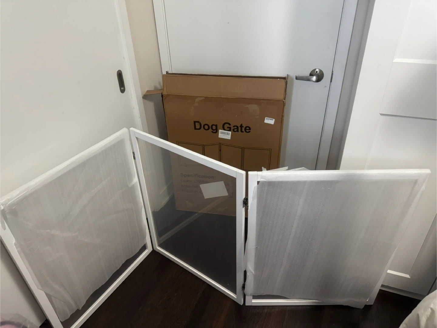 1000+Brand New 3 Panel Clear Freestanding Dog Fence, perfect to go around a Christmas Tree retails on Amazon for $159 with tax asking $75 firm It’s brand new in the box never been used, I just took it out of the Styrofoam packaging to take the photos Pick up in the lobby of my condo located in Scarborough at Finch and McCowan