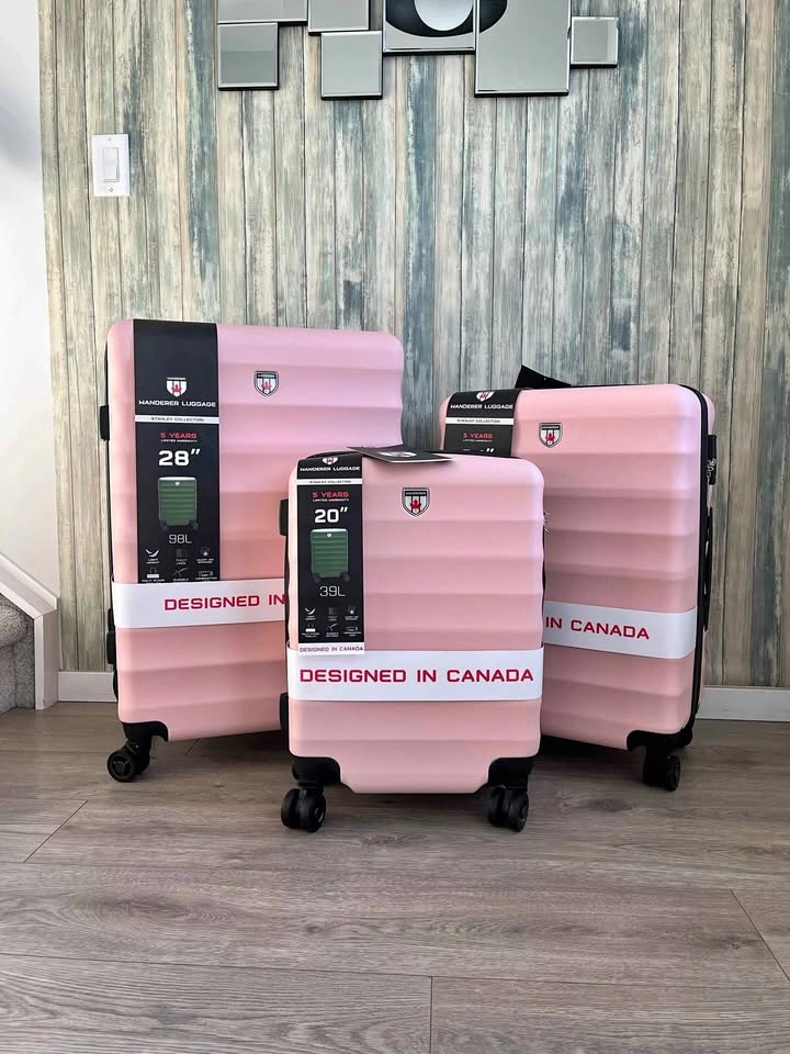 BRAND: Wanderer Luggage Pick up in Panorama Hills NW. $139 for 3 Pc set which included Large Check in 28”, Medium Check in 24” & Small Carry on 20” Total Exterior Dimensions Including Wheels: Large: 29.5” * 19.5” * 11.5” Medium: 25.5 * 17 * 10” Carry on: 21” * 15” * 9” Features: Quiet 360° Spinner wheels Built in Combination Lock Ergonomic Handle Fully Lined Premium Interior Sturdy 3 Level Aluminum Trolley Lightweight & Durable Scratch-proof exterior Body 5 Years Limited Warranty by Manufacturer I Will Issue you a receipt which can be used for warranty or claim needs with airline if needed. Prices are FINAL & FIRM (Includes GST) Payment accepted in Cash or transfer