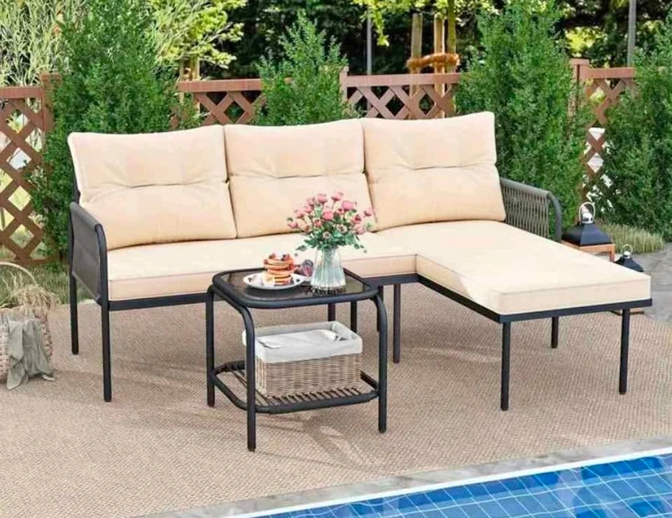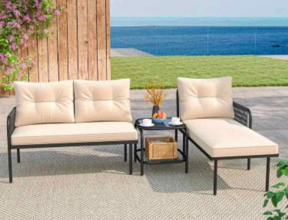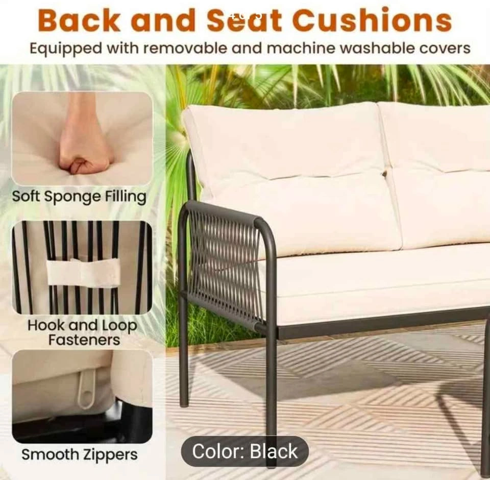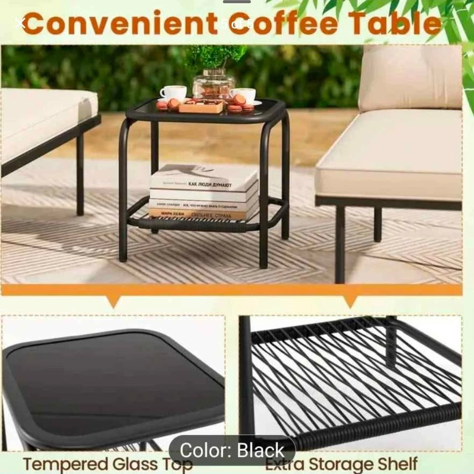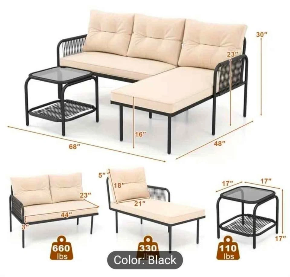 Enjoy the great outdoors with our three-piece patio furniture collection! Made from durable PE rattan, every item in this outdoor seating arrangement is built to endure. The robust metal structure guarantees remarkable stability, complemented by adjustable foot pads for added support. With soft sponge-filled cushions for the back and seats, this sectional sofa set offers a cozy seating experience. The high-quality PE rattan is designed for exceptional durability. The cushions for the back and seat are filled with sponge, offering unmatched comfort. Cleaning is a breeze thanks to the removable and machine-washable cushion covers. The table features a tempered glass top and an additional shelf for storage convenience. A robust metal frame with triangular connectors guarantees stability. Adjustable foot pads allow for better adaptation on uneven surfaces. The loveseat and lounge sofa can be arranged separately or together as desired. Color: Black. Material: PE Rattan, Metal, Tempered Glass, Polyester Fabric, Sponge. Product Dimensions: 68 x 48 x 30 inches (L x W x H). Net Weight: 52 lbs.