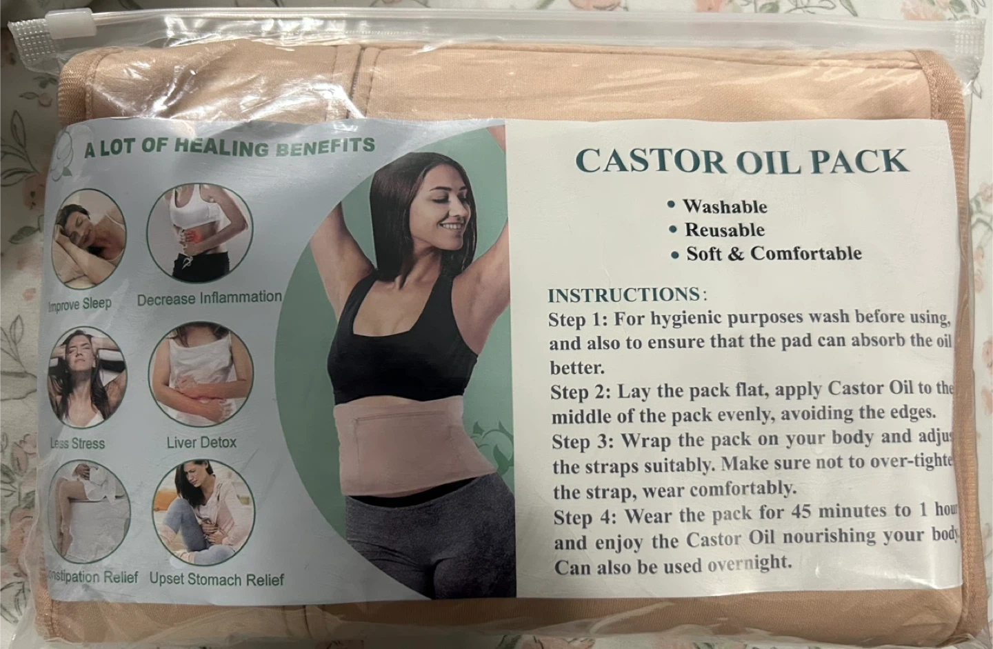91Selling a castor oil pack, still in its original packaging! It's washable, reusable, and designed for comfort. The pack comes with instructions, making it easy to use. Just wash before using, apply castor oil to the middle, wrap it around your body, and wear for 45 minutes to an hour