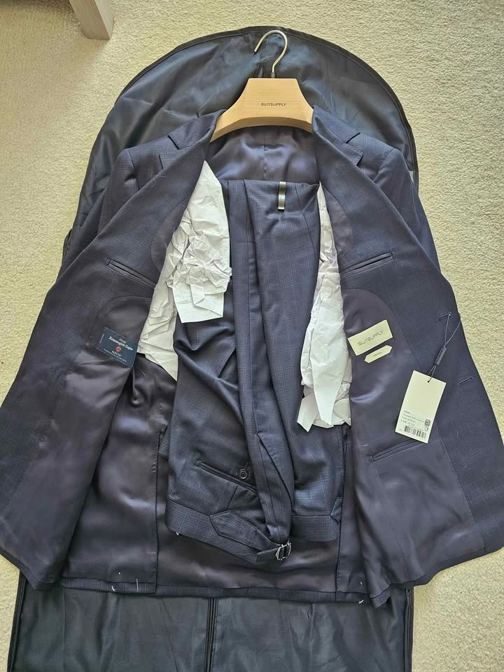 15Never worn Suit Supply suit. Pants and suit jacket combo. Size 40 with size 34 pants. Feel free to message if you have any questions!