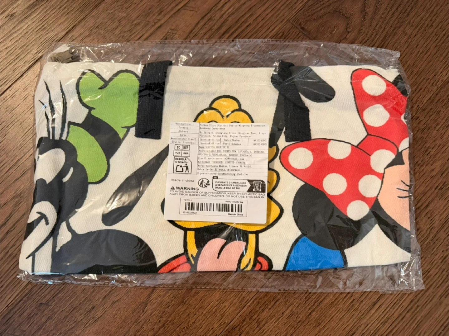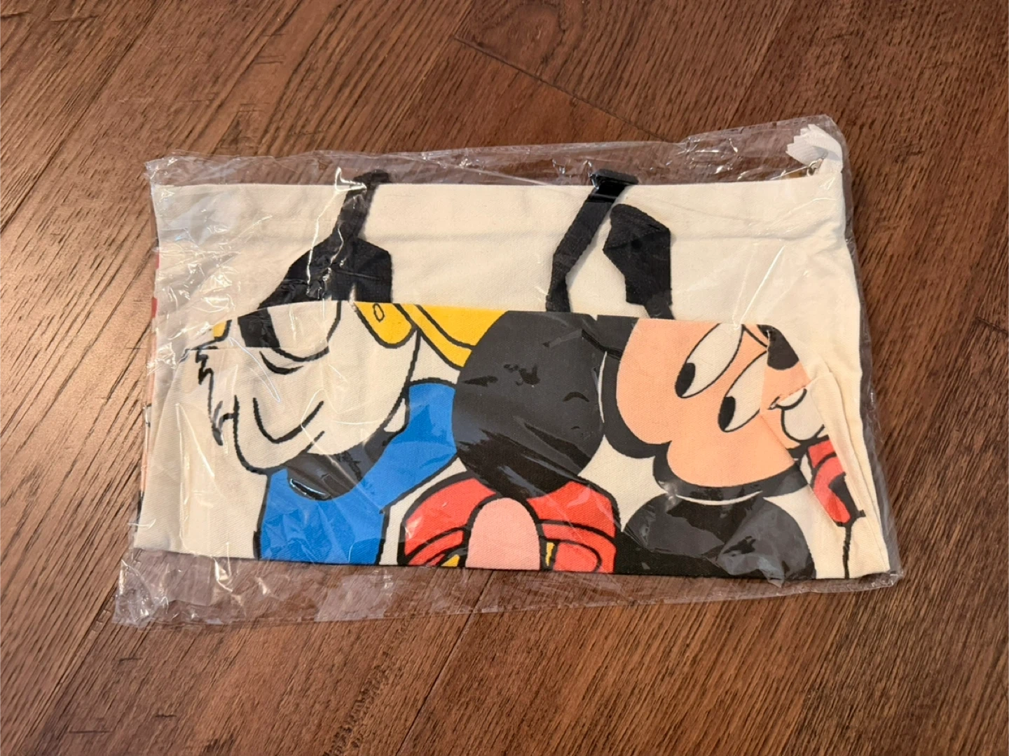 112Brand New Disney Mickey & Friends Tote Bag This adorable Disney tote bag features Mickey Mouse and his friends! It's brand new and still in its original packaging. The bag is made of canvas and has black handles. It measures approximately 38cm/14.96 inches in width, 29cm/11.42 inches in height, and 8cm/3.15 inches in depth. Perfect for any Disney fan! Clean, smoke free home Pick up in North Ajax