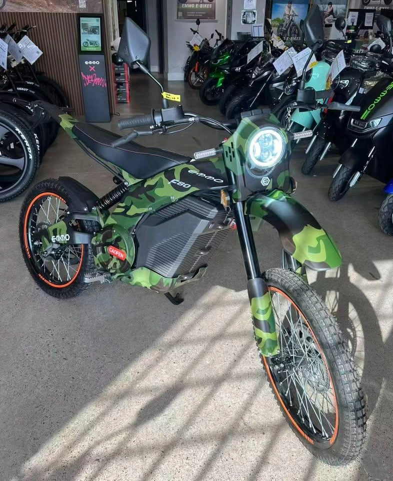 10EMMO Caofen F80 DS – Trail High-Performance Electric Dirt Bike Battery: 72V/30AH Lithium (~80km) Original Price: $5999>>>$1000 OFF>>>$4999 Unleash the power of innovation, built for thrill-seekers and off-road adventurers. Take your ride to the next level with the EMMO Caofen F80 DS, a trail-ready electric dirt bike engineered for speed, endurance, and control. With its powerful 8000W peak motor, 72V lithium battery system, and smart BMS protection, this machine delivers an unbeatable combination of torque, stability, and efficiency. Whether you’re tearing through trails or gliding over rough terrain, the F80 DS guarantees a smooth and adrenaline-fueled experience — without the noise or emissions of a gas bike. 🔋 Key Highlights ✅ High-Performance 8000W Peak Motor – Instant torque and acceleration for off-road domination. ✅ Advanced 72V Lithium Battery – Long-lasting, high-efficiency power for up to 100 km per charge (depending on riding mode & terrain). ✅ Intelligent Battery Management System (BMS) – Ensures safety, stability, and optimized charging performance. ✅ Durable Aluminum Alloy Frame – Lightweight yet rugged for tough trails and heavy impacts. ✅ Adjustable Suspension System – Superior comfort and control across all terrains. ✅ Hydraulic Disc Brakes – Exceptional stopping power for maximum rider confidence. ✅ Minimal Maintenance, Maximum Performance – Say goodbye to oil changes and complex mechanical upkeep. ✅ Zero Emissions & Whisper-Quiet Ride – Ride freely without disturbing the environment. 🔥(No license/insurance required in most areas). Experience the perfect blend of technology, power, and sustainability — all in one striking design. The EMMO Caofen F80 DS isn’t just a bike — it’s your gateway to next-level adventure. More information: https://emmo.ca/collections/off-road-ebikes/products/caofen-f80-ds?variant=46101266366721 📩 Message us if interested — first come, first serve! 📍Emmo Ebikes Vaughan: 1750 Steeles Ave W Unit 15, Concord, ON L4K 2L7 📞+1️⃣9️⃣0️⃣5️⃣-7️⃣6️⃣0️⃣-7️⃣7️⃣6️⃣0️⃣