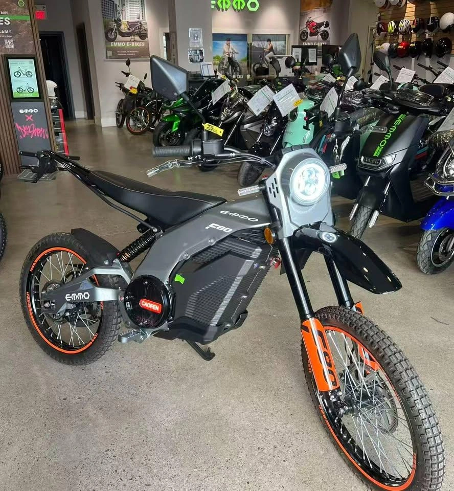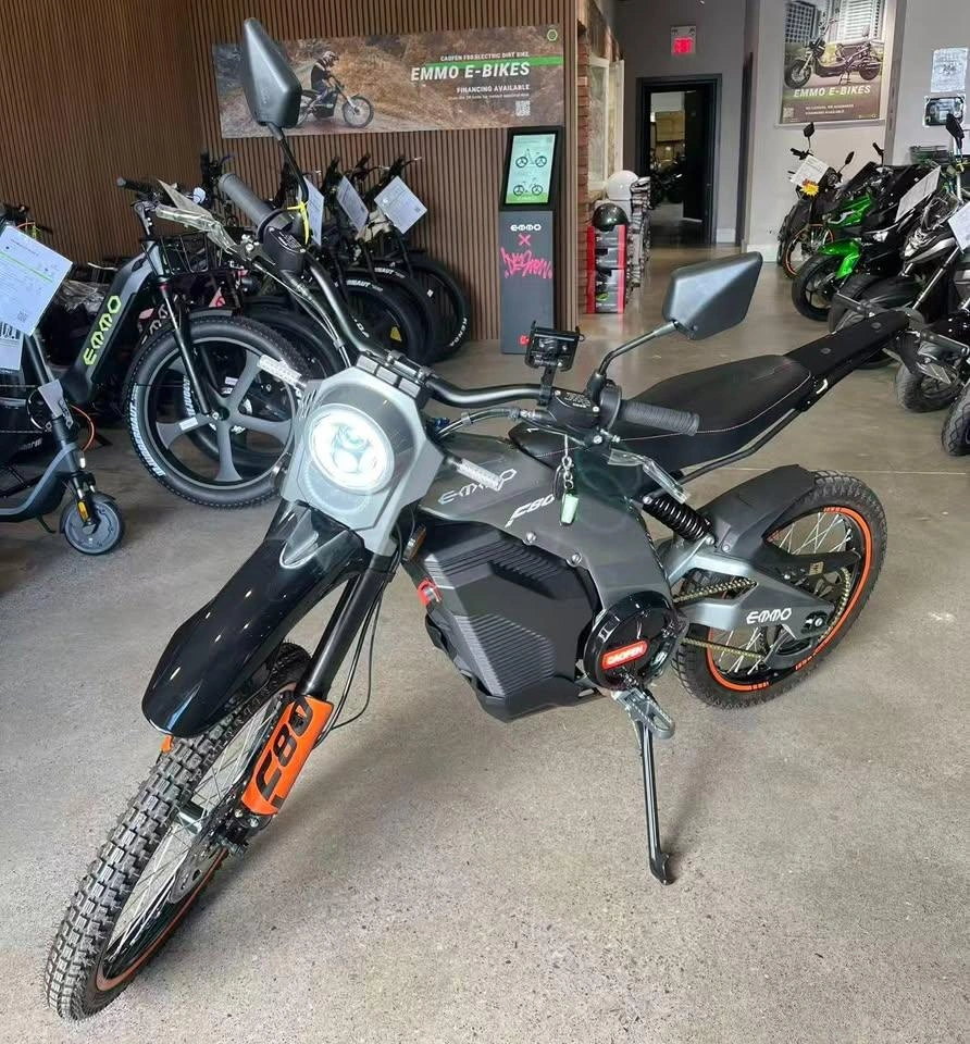 10EMMO Caofen F80 DS – Trail High-Performance Electric Dirt Bike Battery: 72V/30AH Lithium (~80km) Original Price: $5999>>>$1000 OFF>>>$4999 Unleash the power of innovation, built for thrill-seekers and off-road adventurers. Take your ride to the next level with the EMMO Caofen F80 DS, a trail-ready electric dirt bike engineered for speed, endurance, and control. With its powerful 8000W peak motor, 72V lithium battery system, and smart BMS protection, this machine delivers an unbeatable combination of torque, stability, and efficiency. Whether you’re tearing through trails or gliding over rough terrain, the F80 DS guarantees a smooth and adrenaline-fueled experience — without the noise or emissions of a gas bike. 🔋 Key Highlights ✅ High-Performance 8000W Peak Motor – Instant torque and acceleration for off-road domination. ✅ Advanced 72V Lithium Battery – Long-lasting, high-efficiency power for up to 100 km per charge (depending on riding mode & terrain). ✅ Intelligent Battery Management System (BMS) – Ensures safety, stability, and optimized charging performance. ✅ Durable Aluminum Alloy Frame – Lightweight yet rugged for tough trails and heavy impacts. ✅ Adjustable Suspension System – Superior comfort and control across all terrains. ✅ Hydraulic Disc Brakes – Exceptional stopping power for maximum rider confidence. ✅ Minimal Maintenance, Maximum Performance – Say goodbye to oil changes and complex mechanical upkeep. ✅ Zero Emissions & Whisper-Quiet Ride – Ride freely without disturbing the environment. 🔥(No license/insurance required in most areas). Experience the perfect blend of technology, power, and sustainability — all in one striking design. The EMMO Caofen F80 DS isn’t just a bike — it’s your gateway to next-level adventure. More information: https://emmo.ca/collections/off-road-ebikes/products/caofen-f80-ds?variant=46101266301185 📩 Message us if interested — first come, first serve! 📍Emmo Ebikes Vaughan: 1750 Steeles Ave W Unit 15, Concord, ON L4K 2L7 📞+1️⃣9️⃣0️⃣5️⃣-7️⃣6️⃣0️⃣-7️⃣7️⃣6️⃣0️⃣