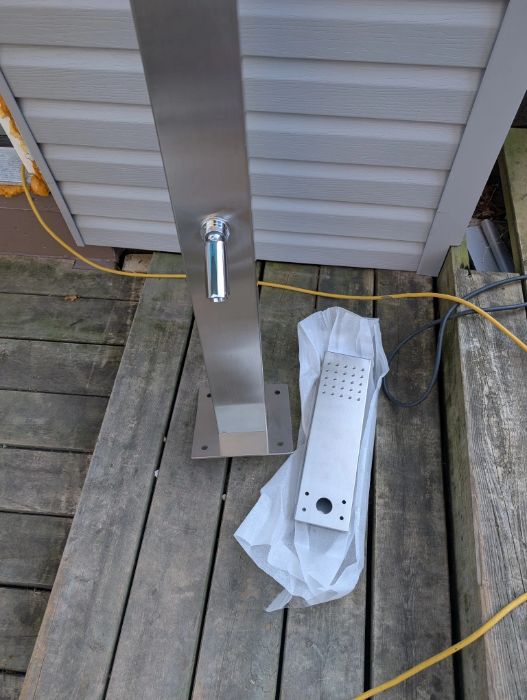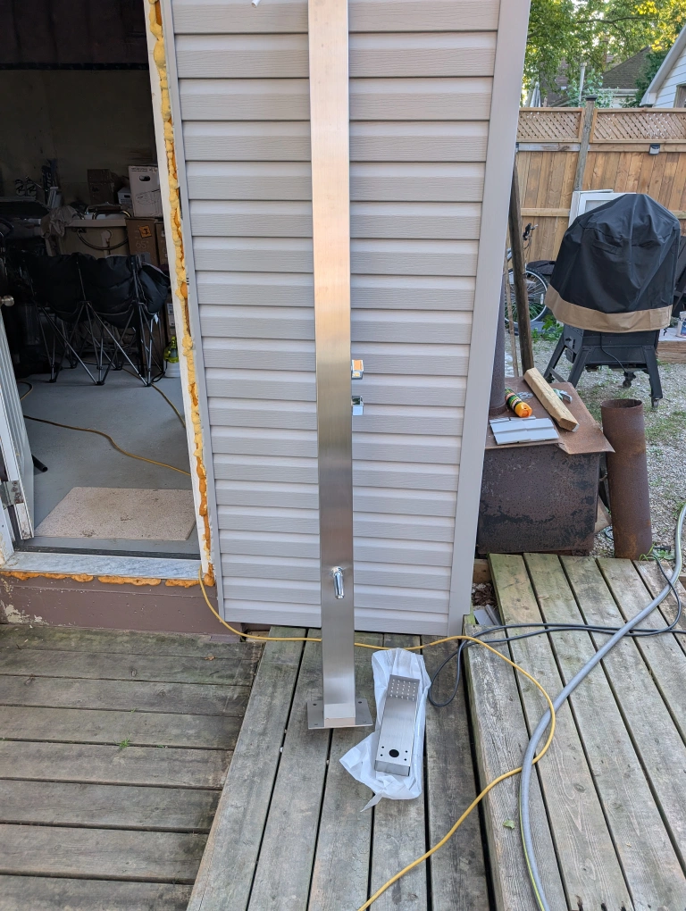 Brand new Empava 83” inch outdoor freestanding outdoor shower tower for sale. Shower column system with rainfall waterfall, stainless steel, freestanding or wall mounted. Retails for $900 plus tax, selling for $200 FIRM. Shower, Bathroom, Bath, Tub, Reno, Bathtub, Water, Tower, Massage, Rainfall, Waterfall, Jets, LED, Lights, Column, Valve, Wand, Spray, Renovation, Temperature, Pressure, Balanced, kit, system, trim