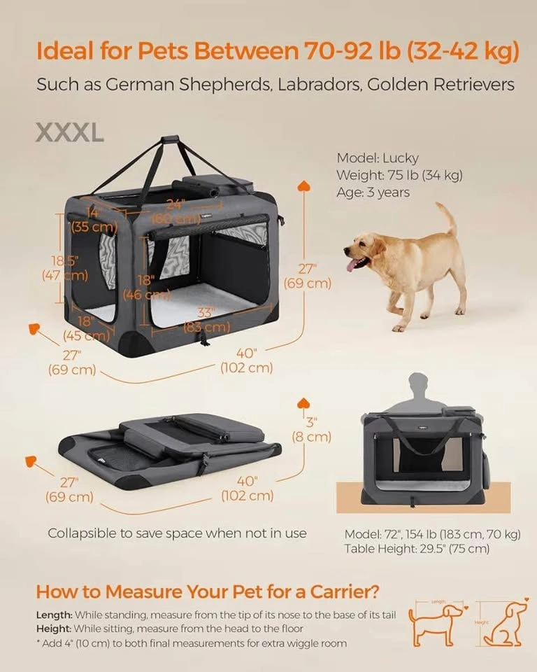 100Perfect for big pups! ๐ถ Collapsible, lightweight & super sturdy โ great for home, travel, or vet visits. Breathable mesh, strong metal frame, handy pockets & carry handle. Size: 40 x 27 x 27 inches โจ Brand new โ never used! My price: $95 Pick up in Riverbend Cash preferred