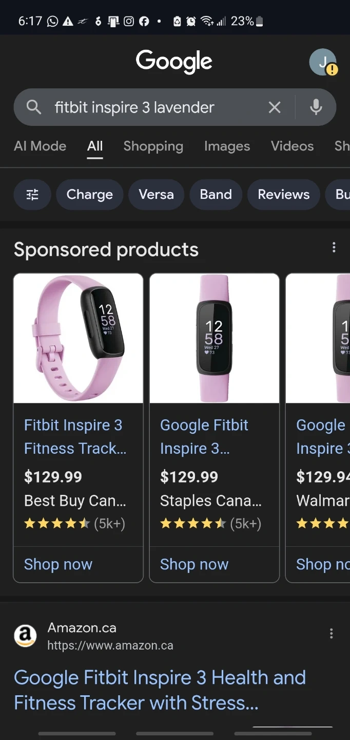 73Price: $90 Retail Price: $129 + tax (~$145) at BEST BUY Pickup: Mississauga (Lakeshore / Clarkson) --- Condition: Brand new, never used. Box was opened but the watch was never worn. Still has the original protective sticker on the screen. Fully clean + ready to pair with any phone. Includes: • Fitbit Inspire 3 Tracker • Original Band • Quick-Start Guide • Charging cable included (inside box tray) Features: • Tracks steps, heart rate, sleep, stress + more • Up to 10-day battery life • Call & text notifications • Lightweight & comfortable for everyday wear • Works with iPhone + Android via Fitbit app --- Retail Price: $129 + tax (~$145) My Price: $90
