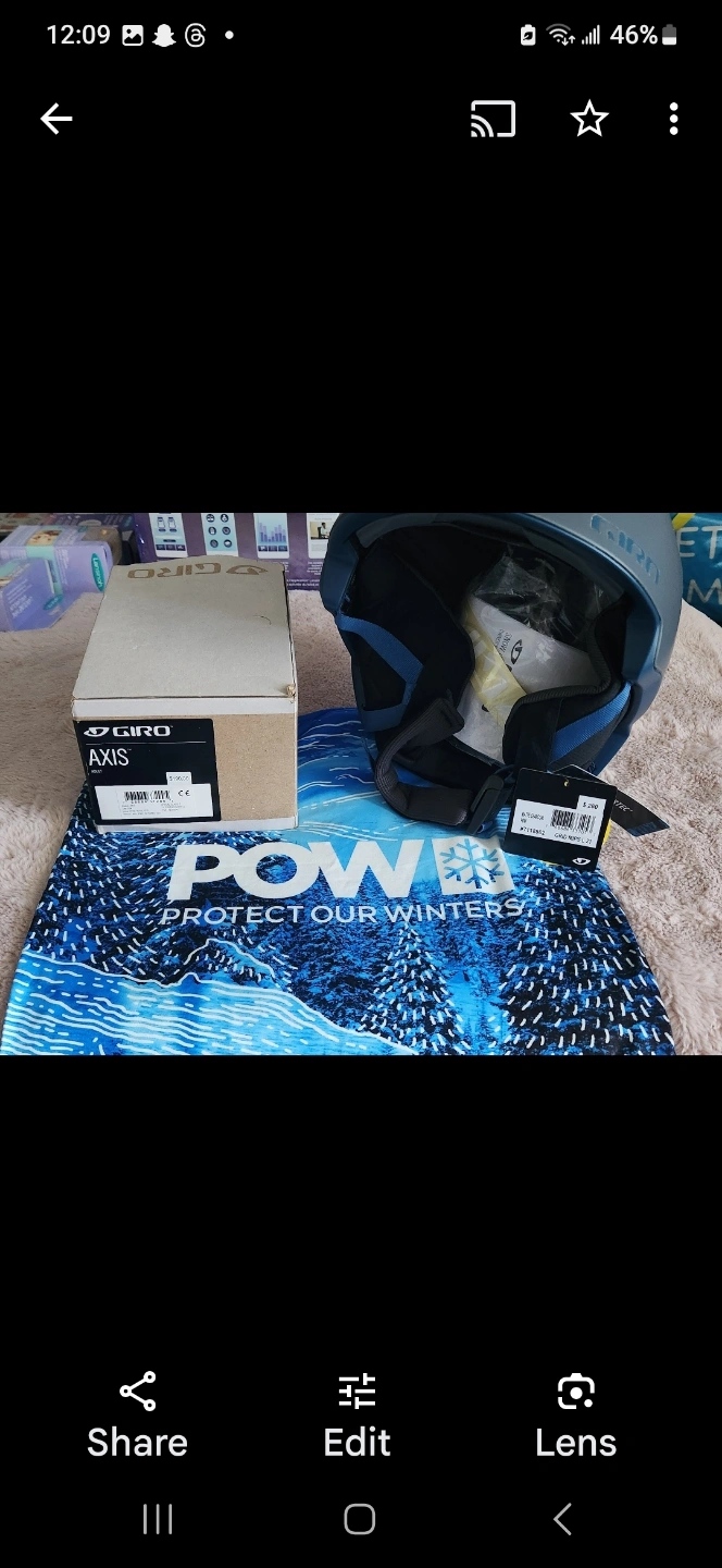 75New Giro Axis MIPS snow helmet, size large. Comes with original box and tags. Polatec liner. Colour is a matte grey-blue.