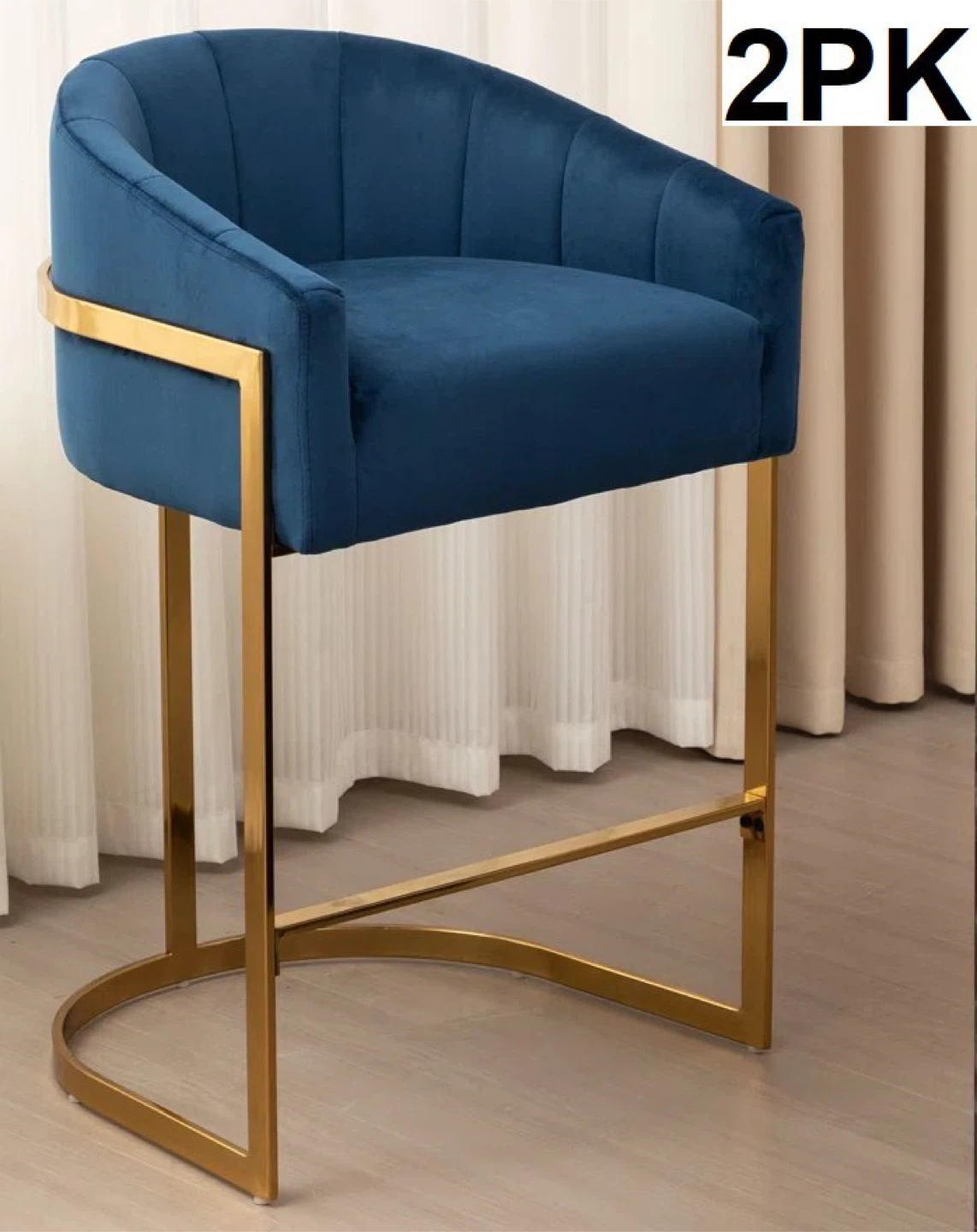 Brand new Gold & Blue Velvet Bar Stools - Set of 2