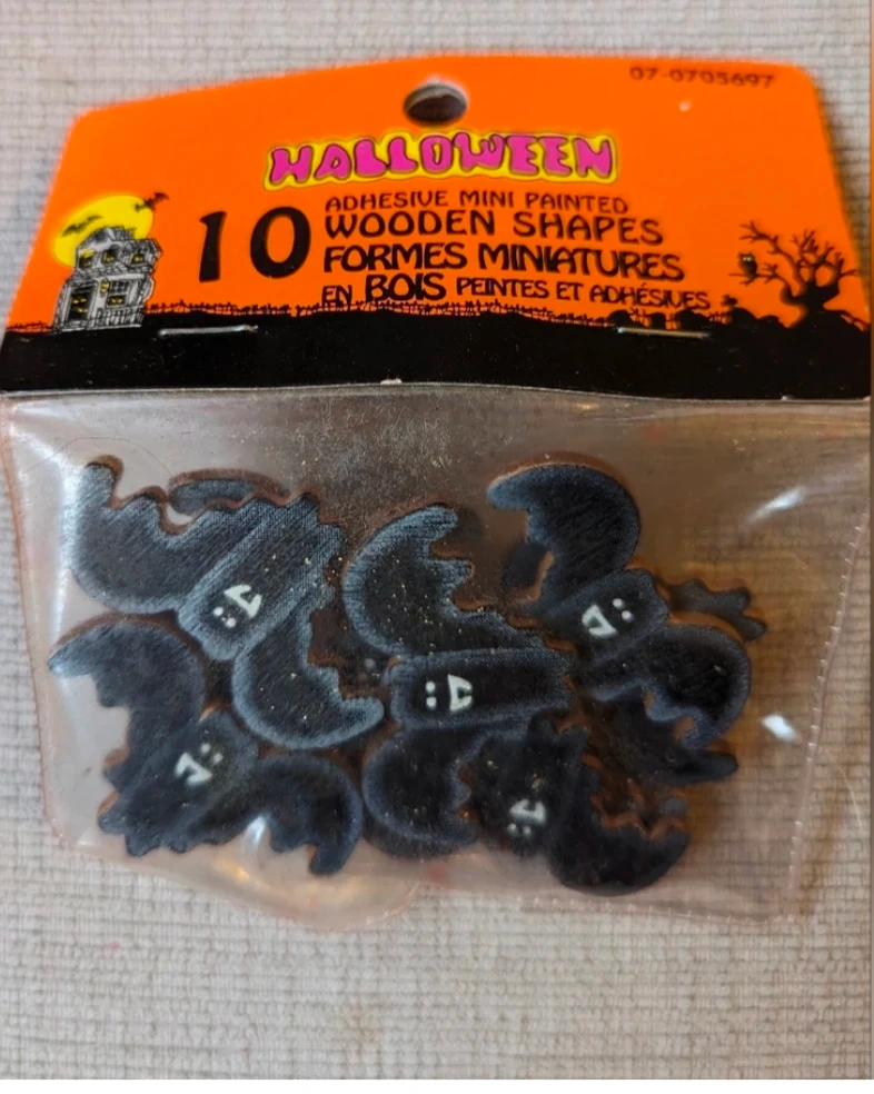 592Selling a pack of Halloween-themed adhesive mini painted wooden shapes! This pack includes 10 adorable wooden shapes, perfect for adding a spooky touch to your crafts or decorations. Get creative and add some Halloween fun to your projects!