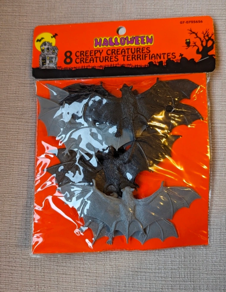 Get ready for Halloween with these creepy creatures! This pack includes 8 bat decorations, perfect for adding a spooky touch to your home or party. They're still in their original packaging and ready to be displayed!