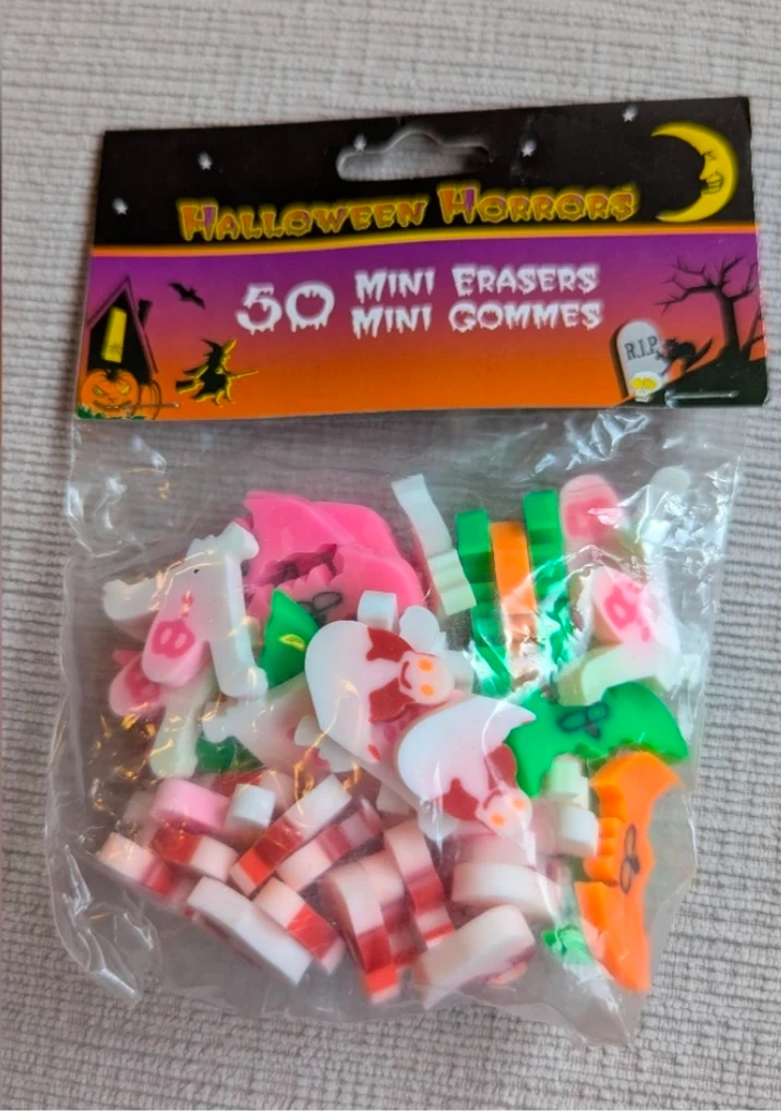 592I have a pack of 50 mini erasers from Halloween Horrors! These are perfect for Halloween-themed fun or party favours