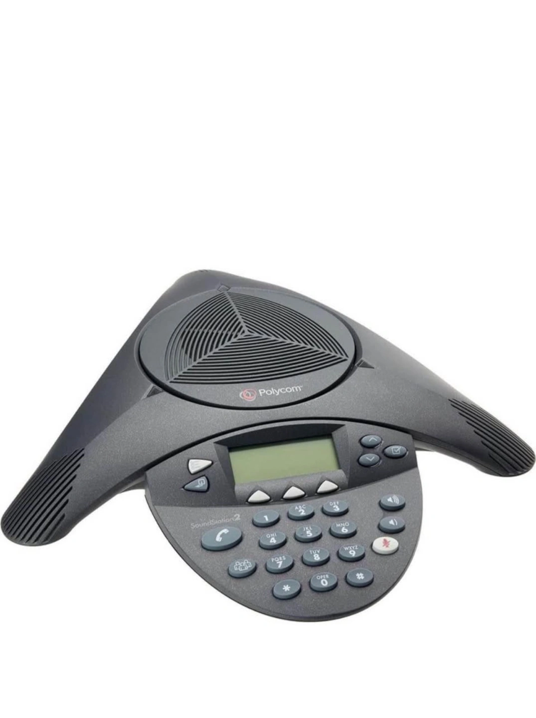 BRAND NEW IN BOX! Polycom SoundStation2 conference phone. Includes power supply and cables. Excellent for conference calls. Triangular design. Number pad and display screen. In original box. Only available for pick up.