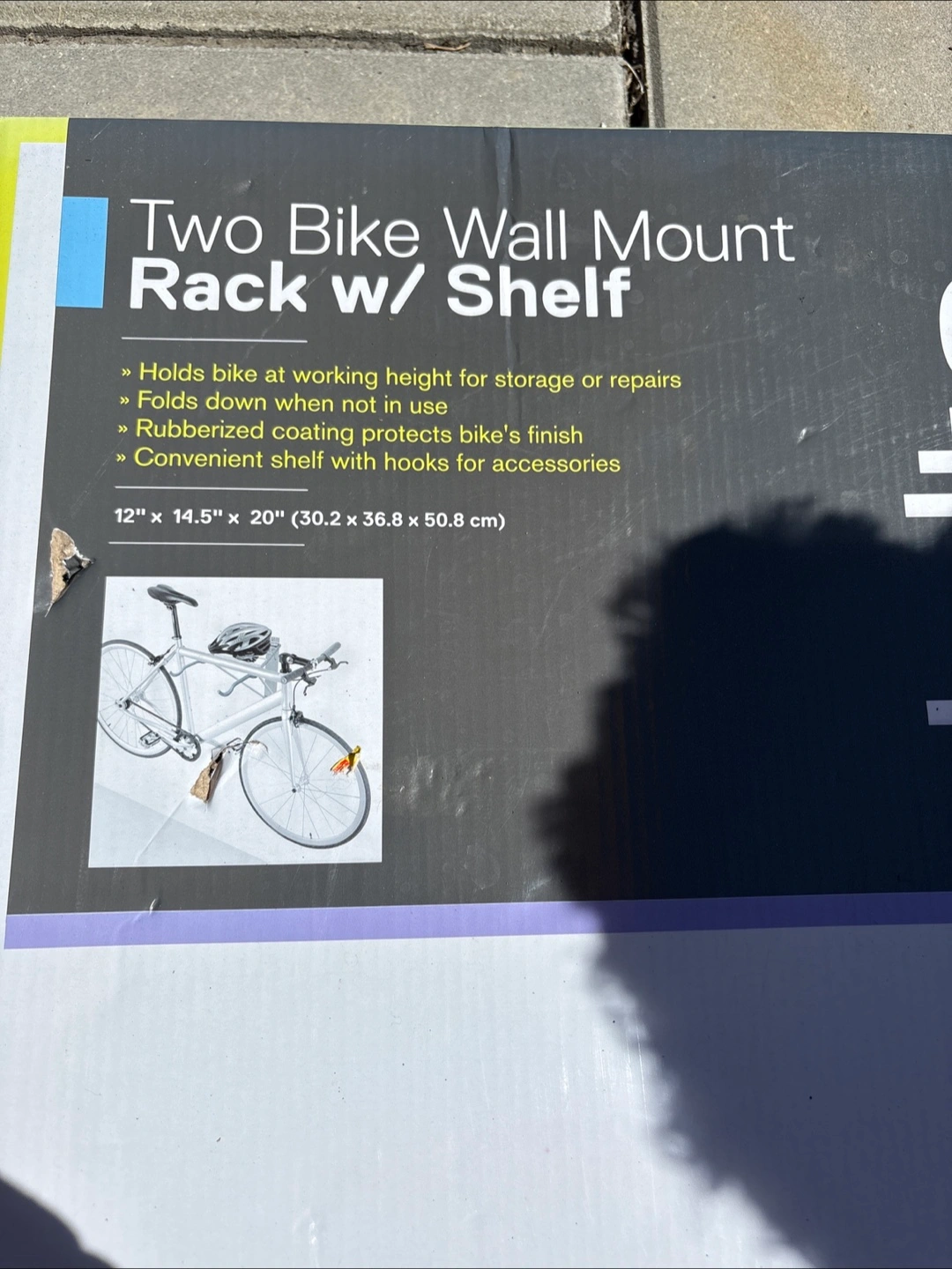 Show allBrand New in Box Two Bike Wall Mount Rack w/ Shelf