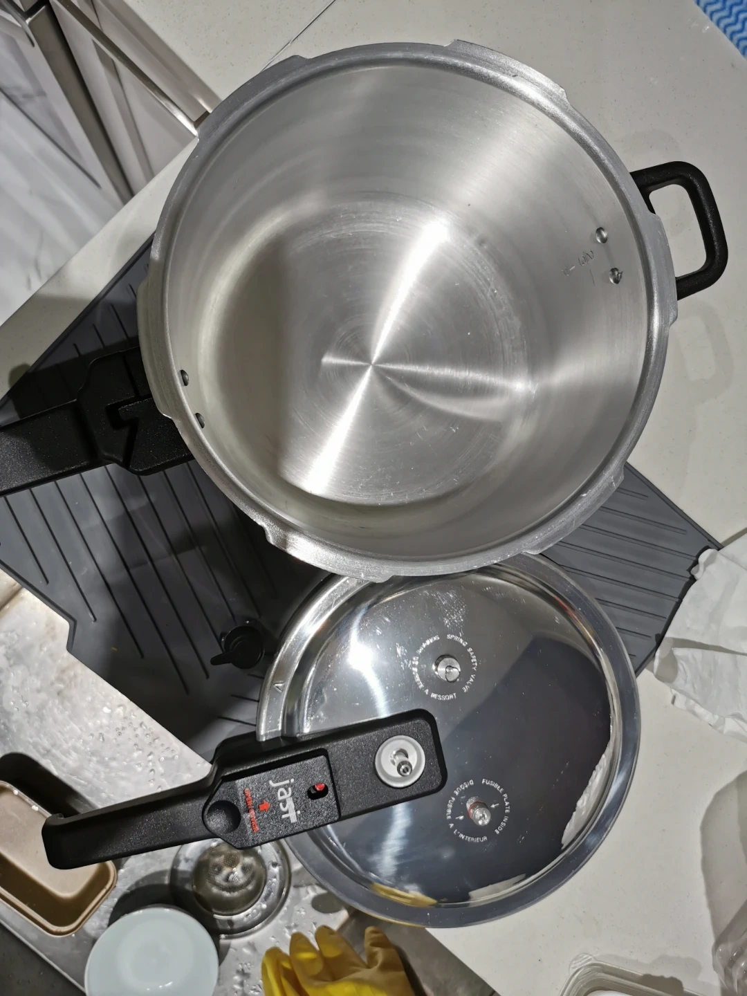 Selling a Jasi pressure cooker in great condition! It measures approximately 9 inches in diameter and 6 inches in height. Perfect for quick and easy meal prep!