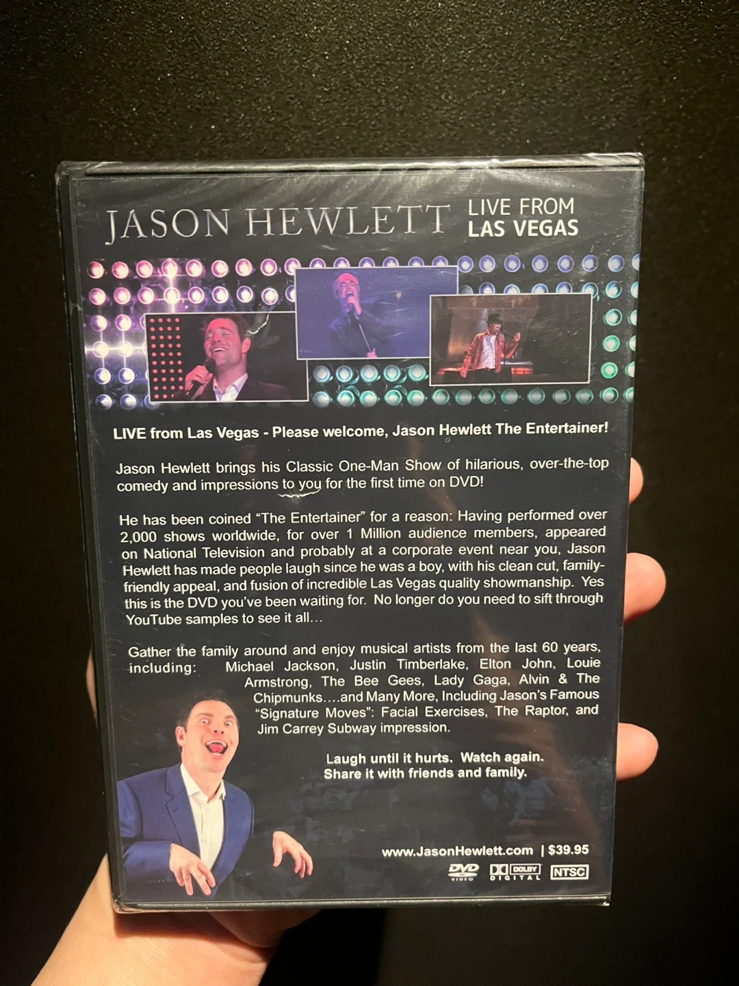 23Selling an unopened DVD of Jason Hewlett Live From Las Vegas! A classic one-man show with hilarious, over-the-top comedy and impressions.